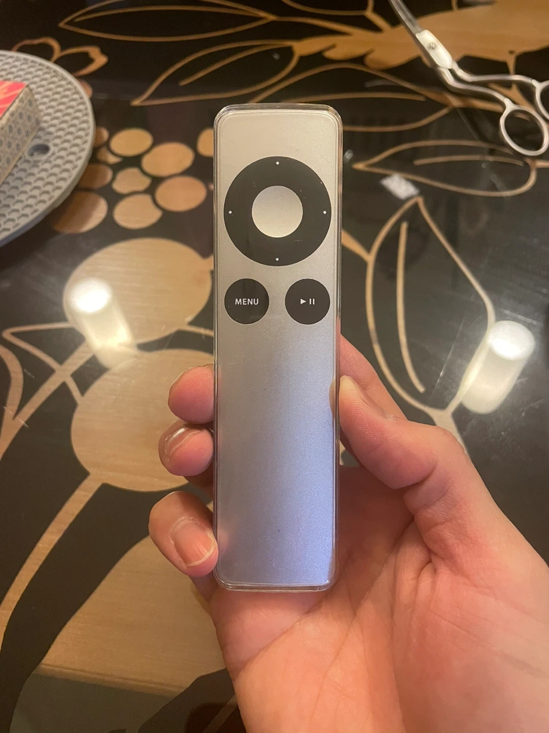 Selling an Apple TV Remote in silver. It's in great condition and comes with its original box