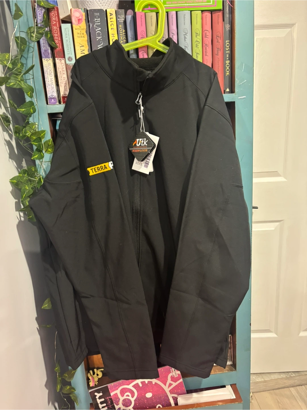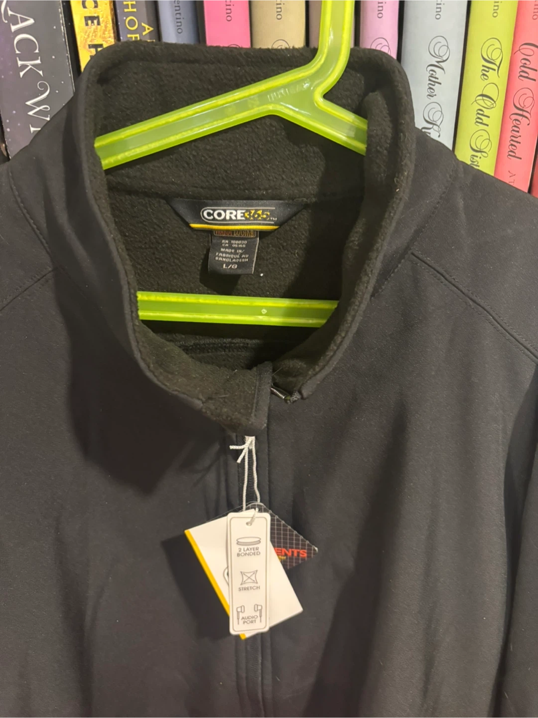 Selling a black Core365 jacket in size L. It is new with tags! The jacket features a 2-layer bonded construction and stretch fabric for comfortable wear. Perfect for layering or wearing on its own during cooler weather