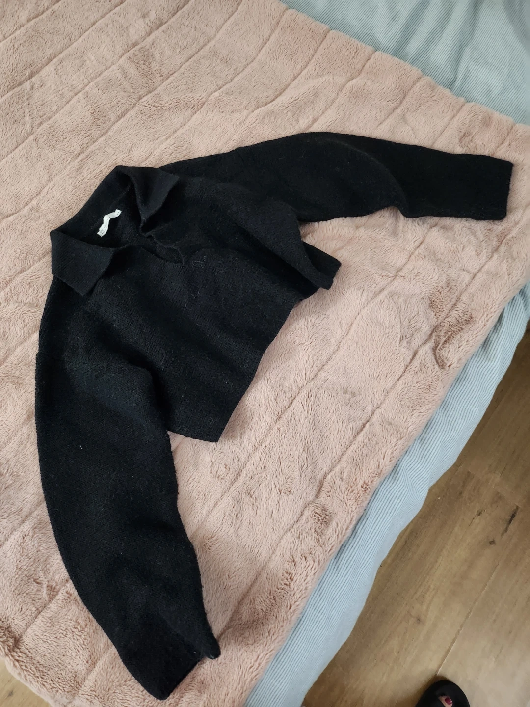 Here's a stylish black cropped knit sweater! It's in great condition and ready for a new wardrobe. Perfect for layering or wearing on its own.
