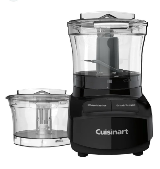 Grab this new Cuisinart 3-Cup (700 ml) Mini Chopper, perfect for chopping, grinding, and pureeing a variety of foods. Its compact design and powerful performance make it an excellent addition to any kitchen.