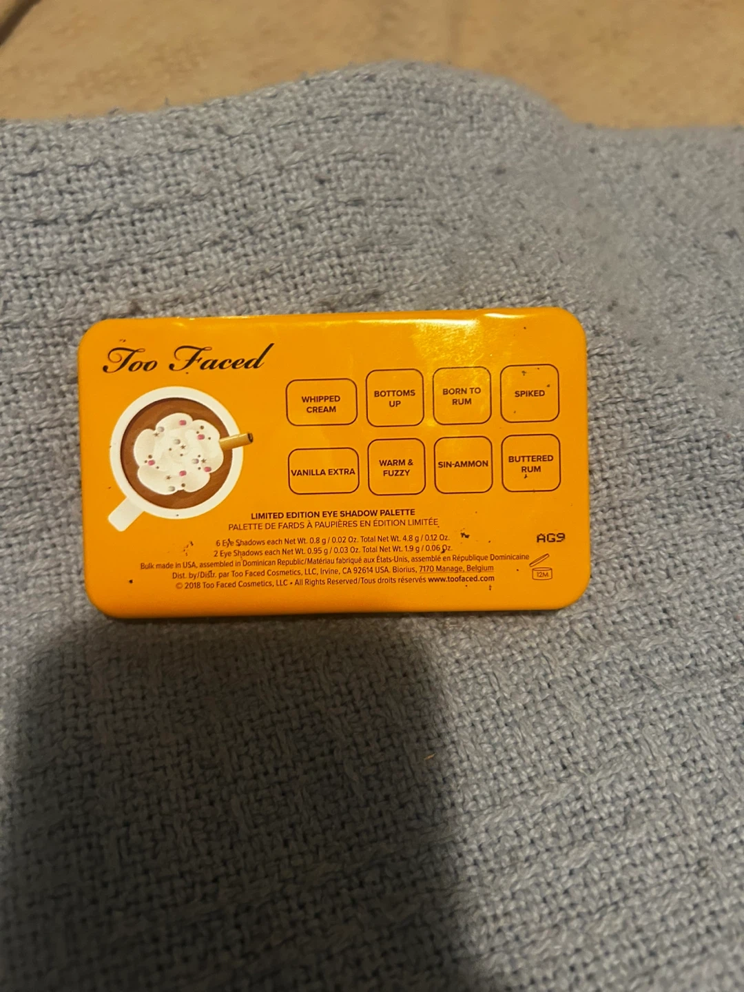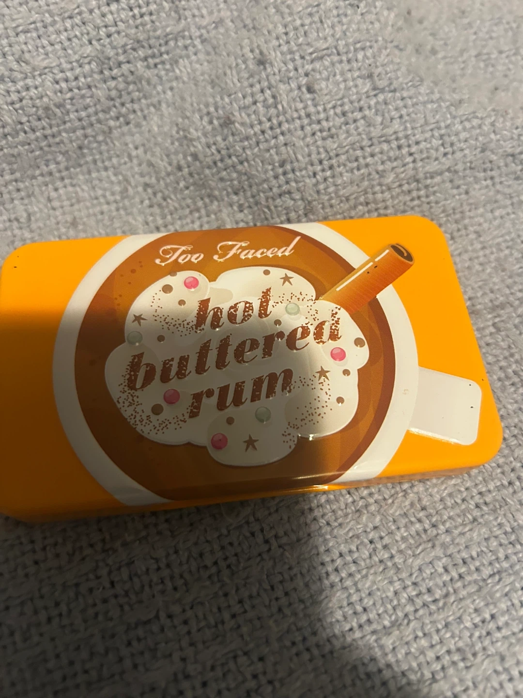 Selling a Too Faced eyeshadow palette in the Hot Buttered Rum edition! The palette has a mix of warm and fuzzy, whipped cream, and buttered rum shades. It's in mint condition and ready for a new look!