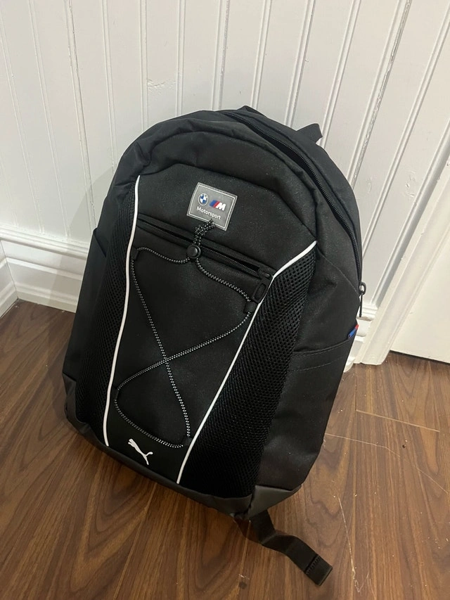Brand new backpack, I’ve got two so I don’t need this one. It’s an official bmw M backpack and has no problems. Many pockets and is very good quality.