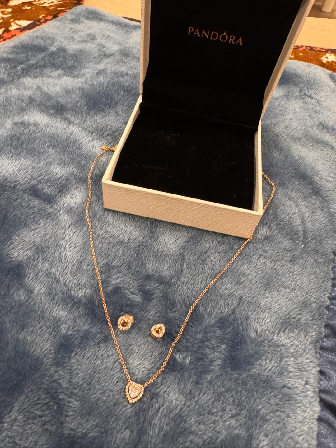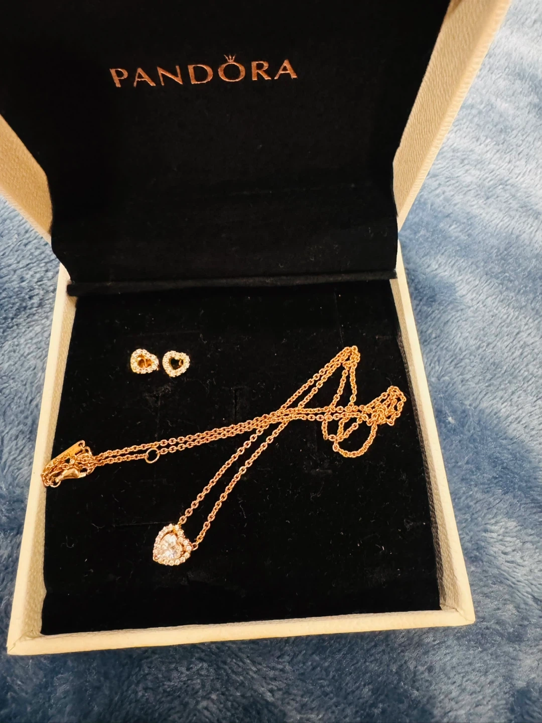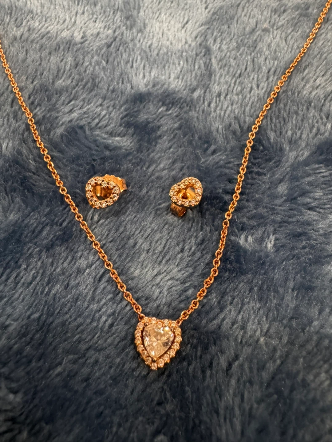 Pandora Rose Gold Heart Necklace & Earrings Set