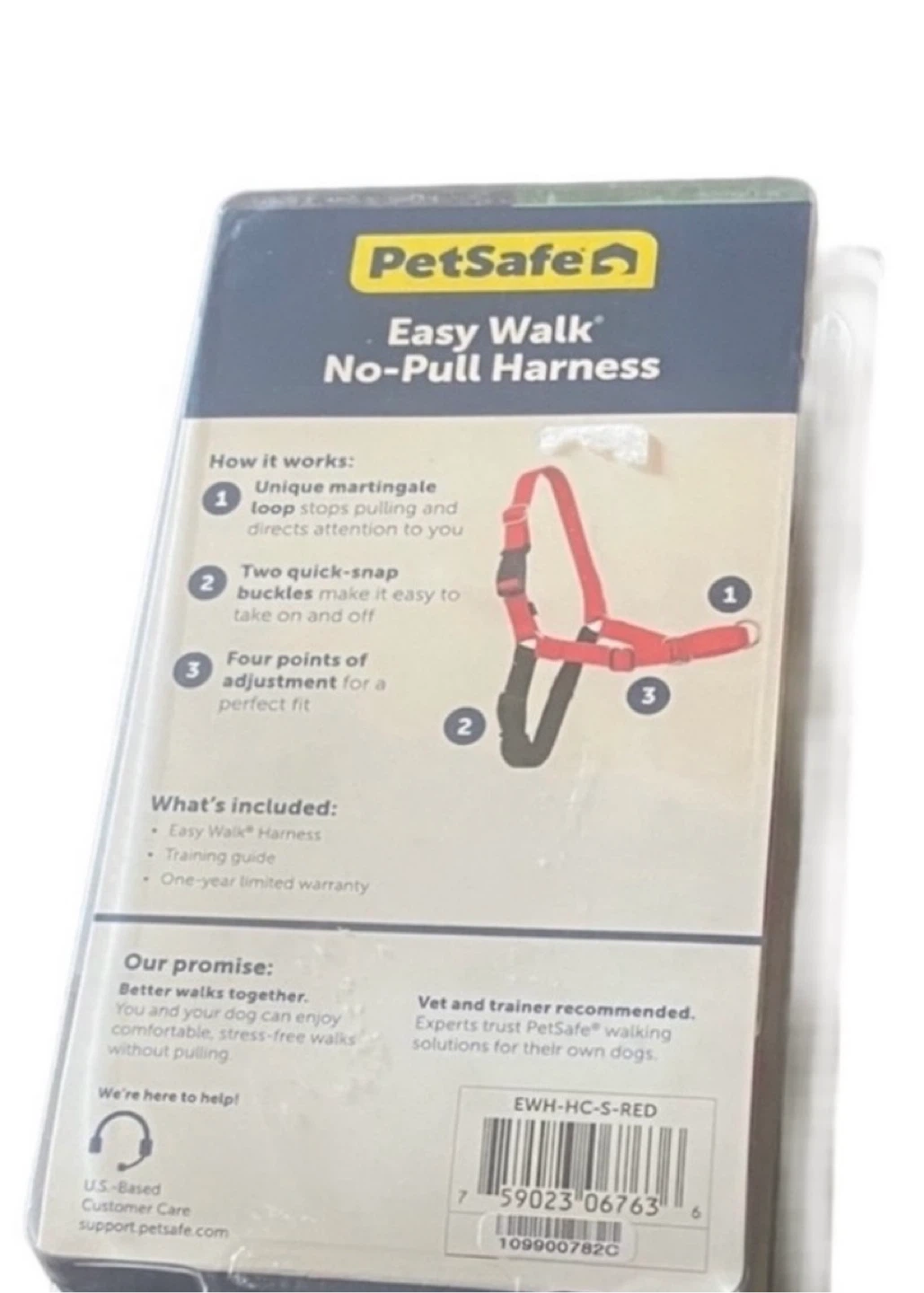 Say goodbye to pulling and hello to peaceful walks! This PetSafe Easy Walk® Harness (Size Small, Red/Black) is vet and trainer recommended for dogs 15–25 lb. Includes: • Easy Walk® Harness (Size Small) • Training guide • Original packaging with bilingual instructions (EN/FR) • QR code for fitting tips and videos Features: • Unique martingale loop gently redirects pulling • Quick-snap buckles for easy on/off • Four adjustment points for a secure, comfy fit • Trusted by experts for better walks together