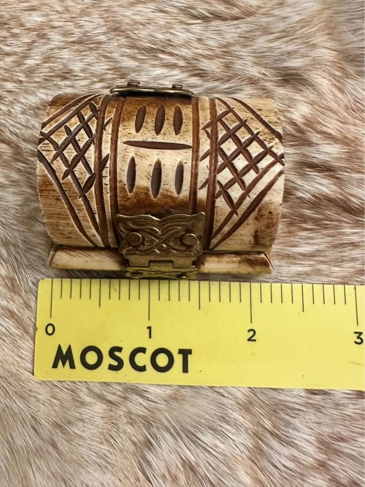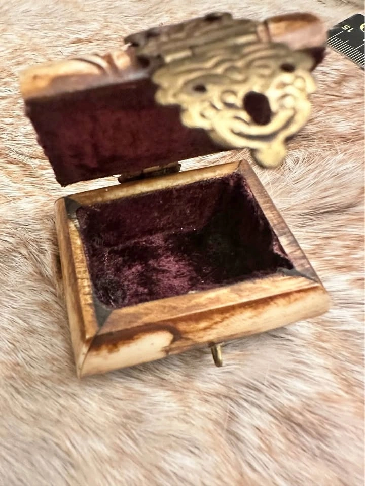 Vintage Camel Bone Brass Decorated Velvet Lined Jewelry Trinket Box