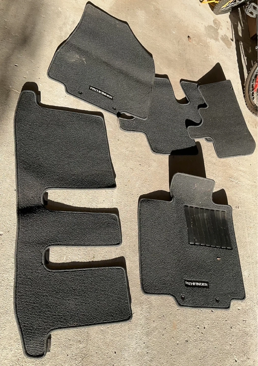 Selling a full set of floor mats for a Nissan Pathfinder. They're in good used condition and ready to keep your car clean!