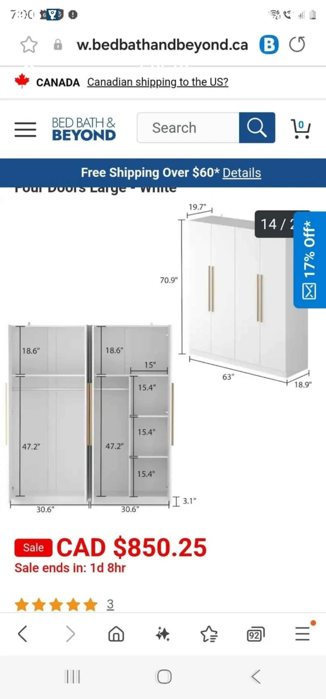 Selling a white shelf. The box has the following measurements: 70.7X22.0X5.5INCH