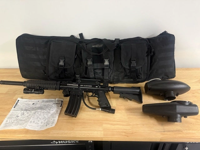 Three paintball markers, carrying cases and all accessories shown in photos. Markers are green RAS Intruder, black Spyder Imagine Digital LED and black Tippmann SL-68 Custom. Smoke/pet free home. Pickup only.