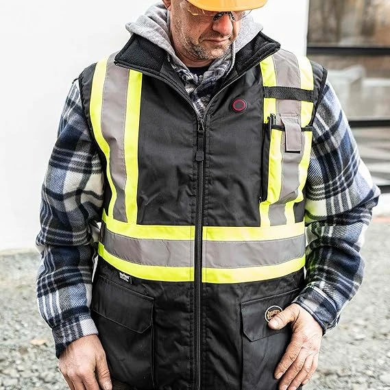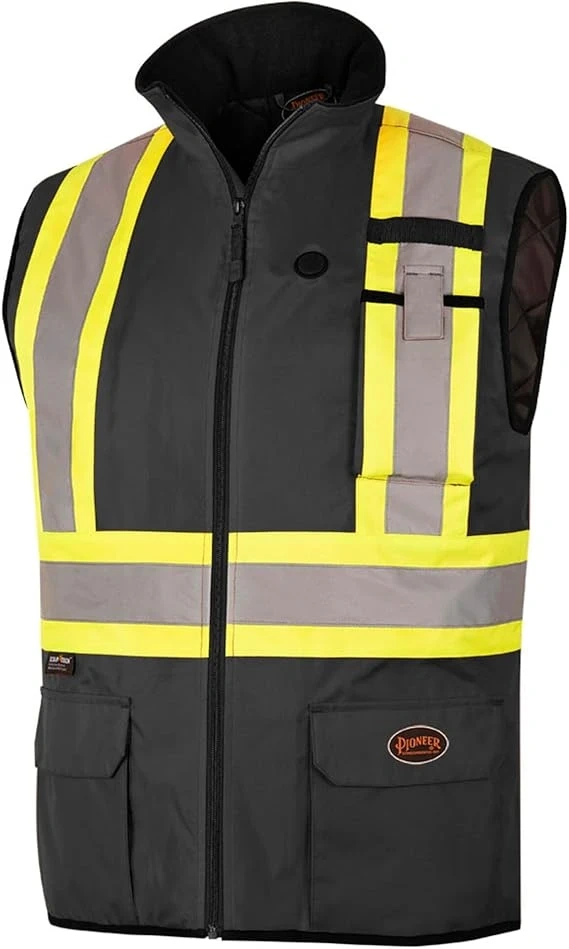HI VIS WATERPROOF SAFETY VEST - Pioneer’s Hi Vis Heated Safety Vest is made for cold weather work in low light conditions. Made with 120 GSM insulation with extra-soft taffeta lining