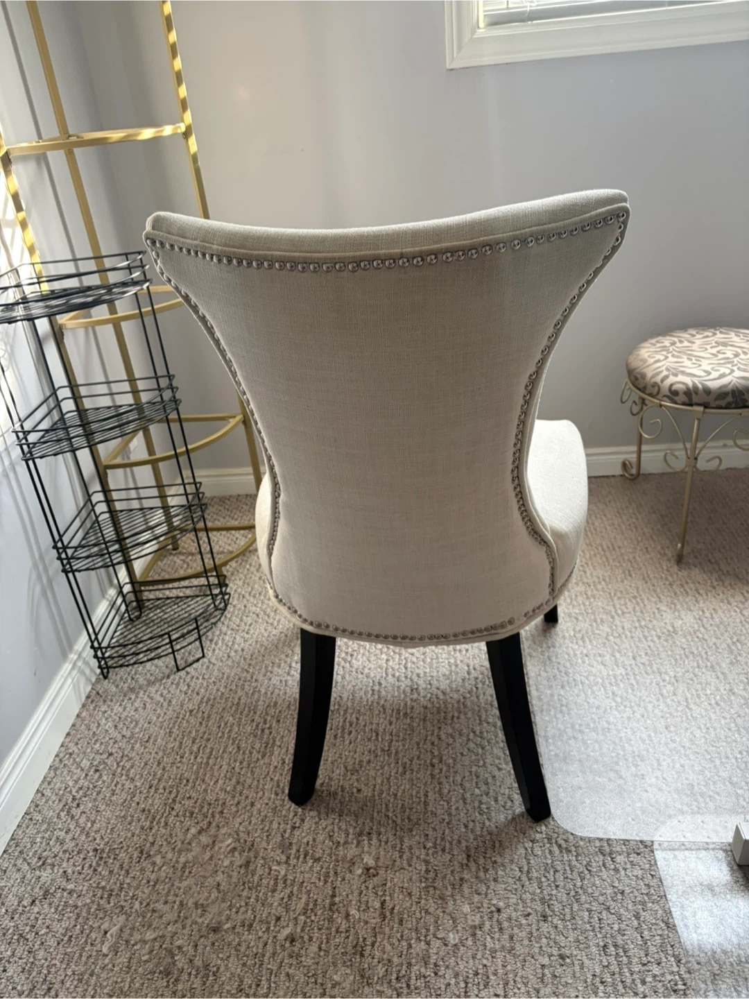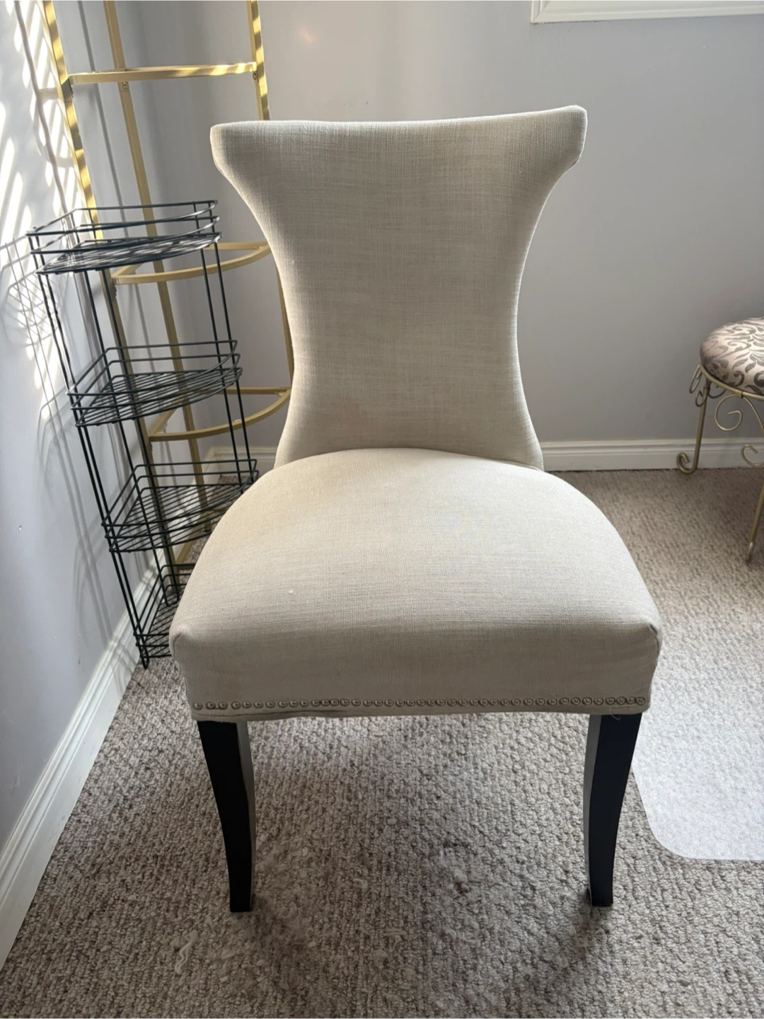 Selling a lovely accent chair that would look great in any room! It's a beige colour with dark wood legs. It's in great condition and ready for a new home!