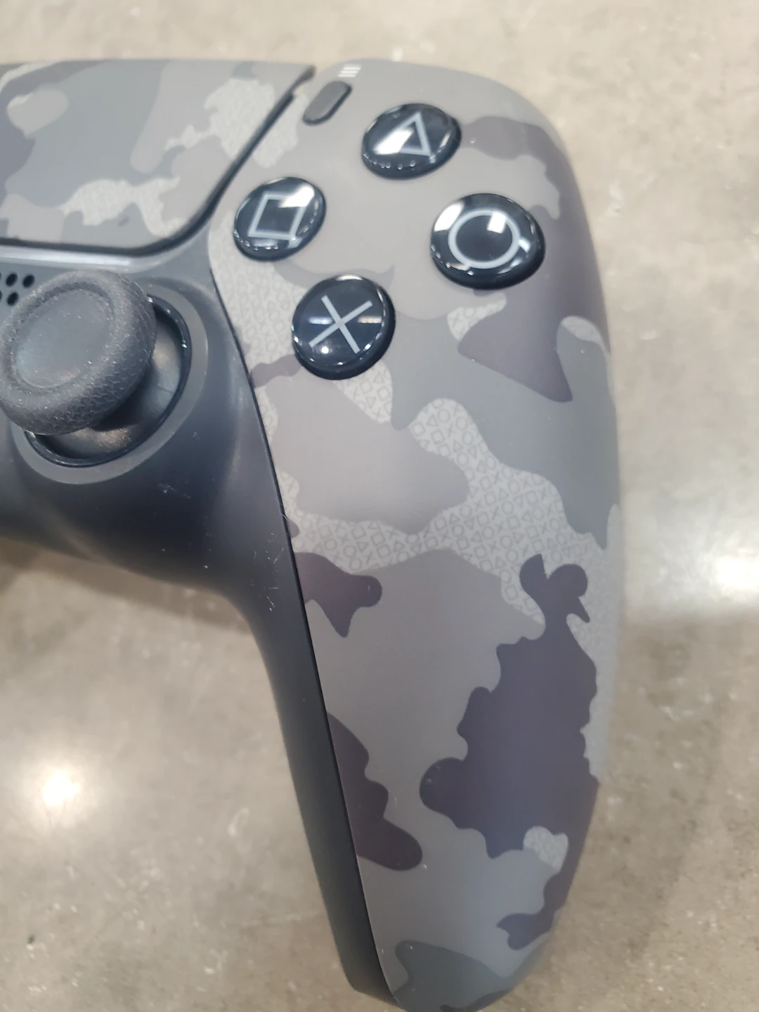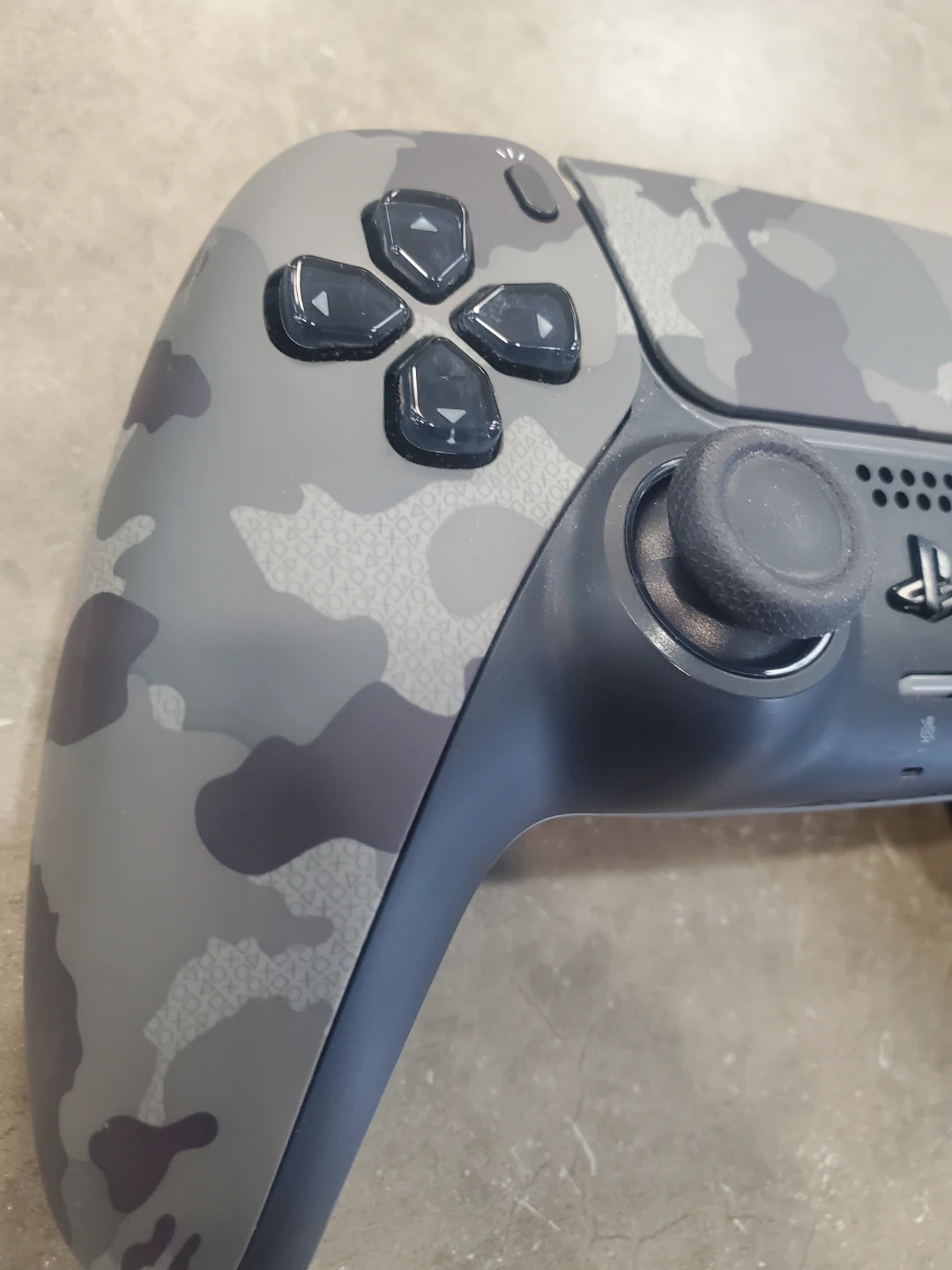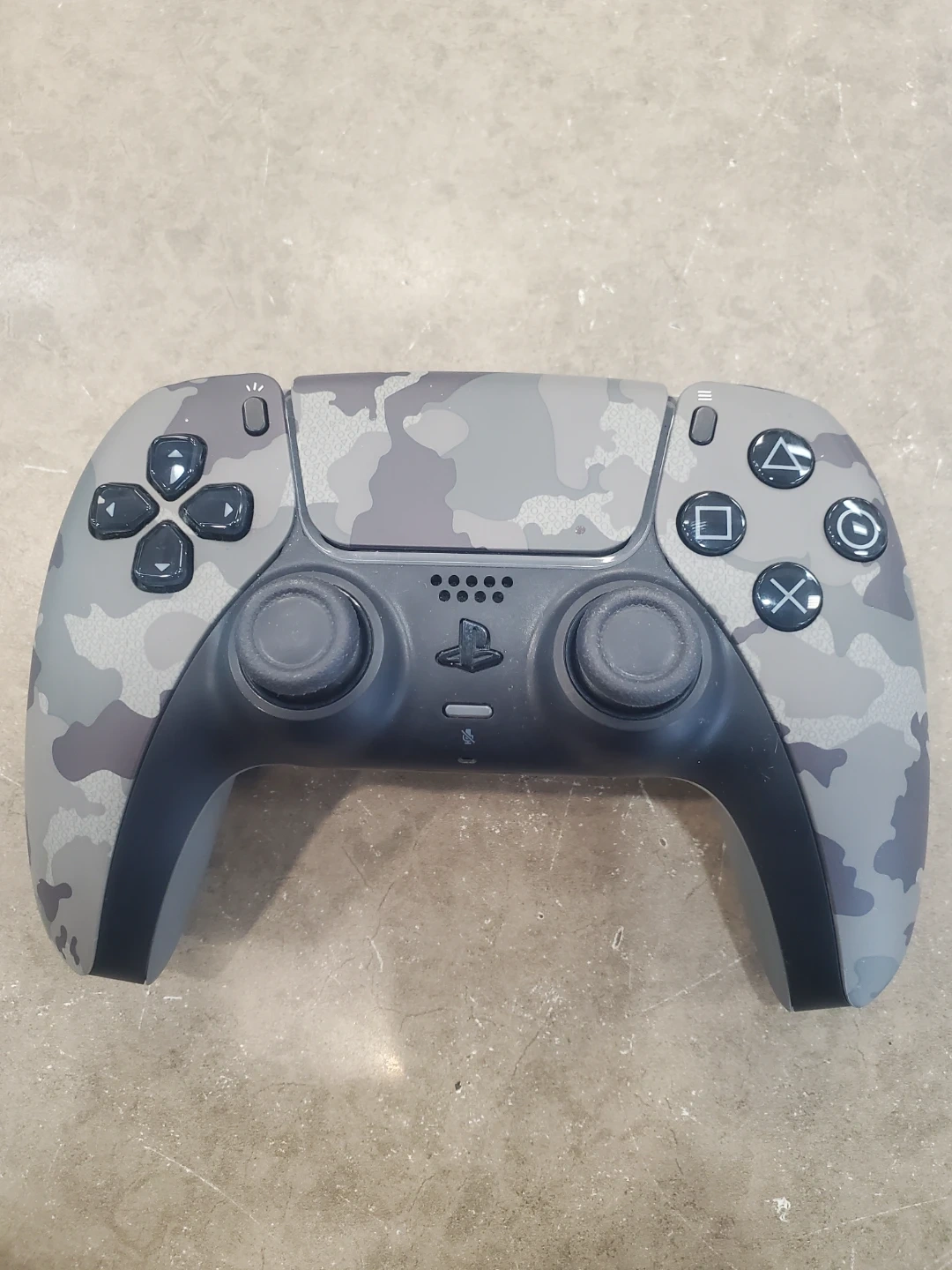 Selling a PlayStation 5 DualSense controller in grey camo. It's in great condition and ready for a new gamer!
