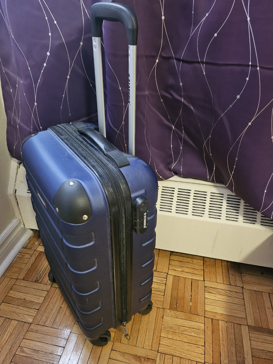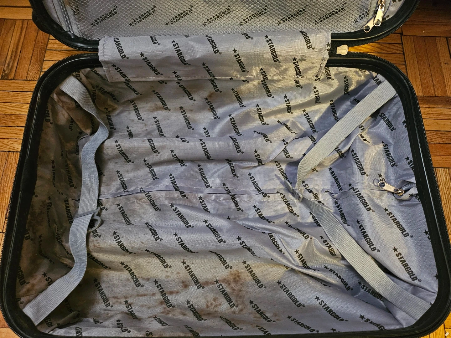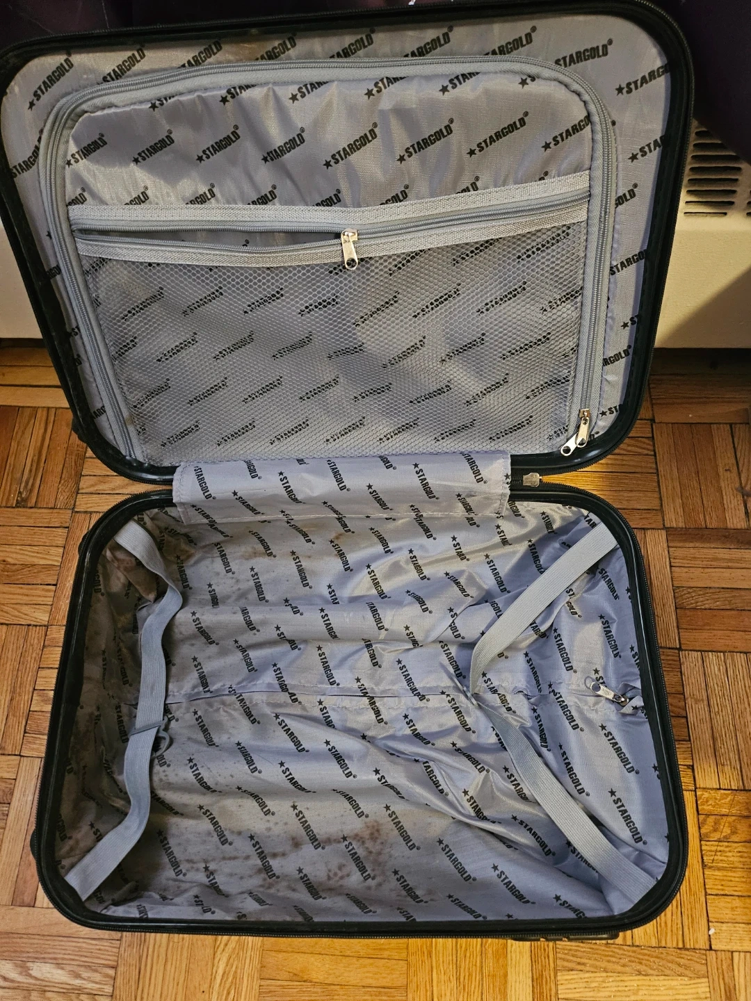 Selling a carry-on suitcase. Perfect condition, just has some dried out stains on the inside from an old spill as shown in the last pic