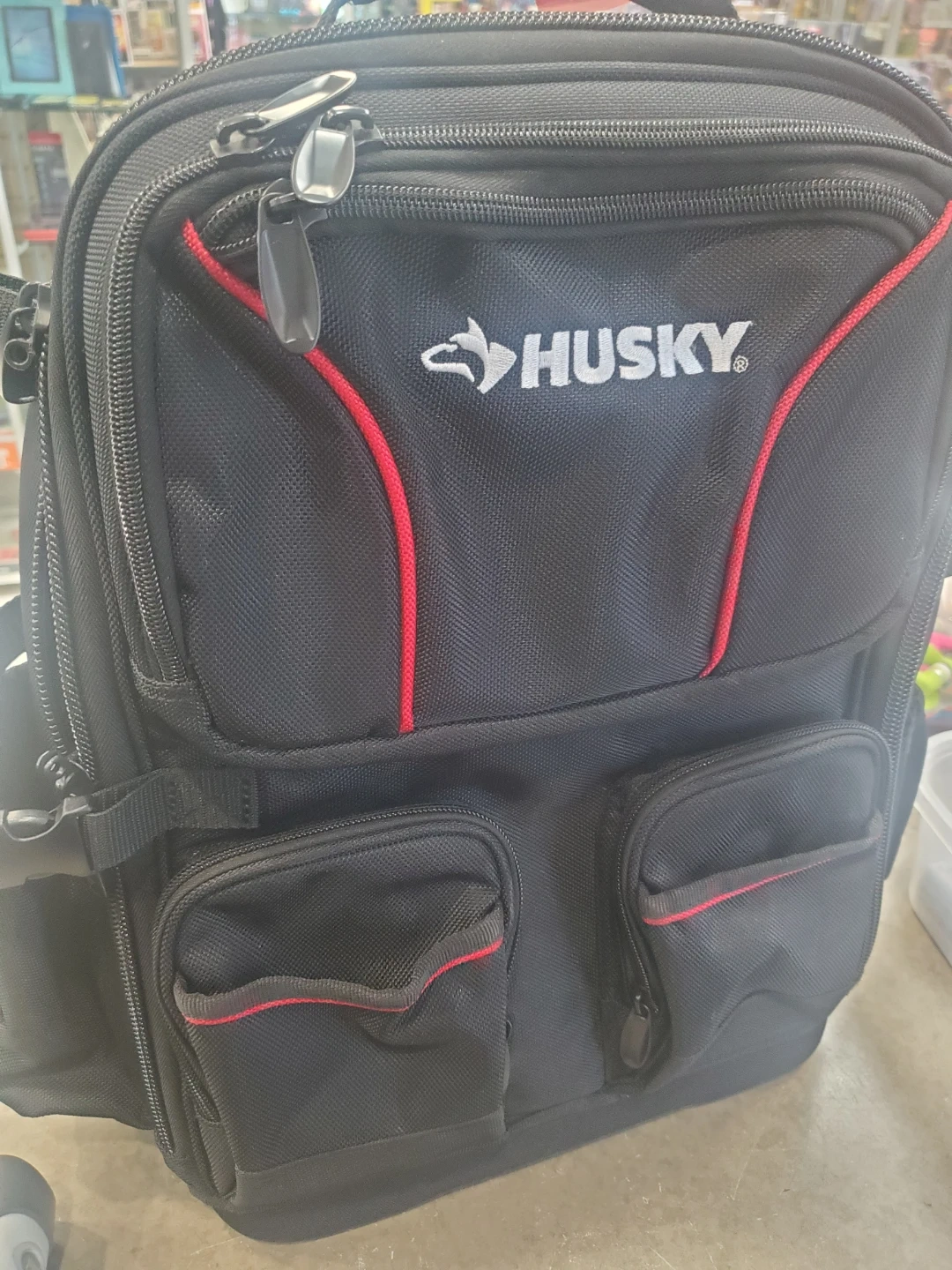 Selling a Husky tool backpack in black! It's in great condition and ready to carry all your tools. Perfect for any job, big or small