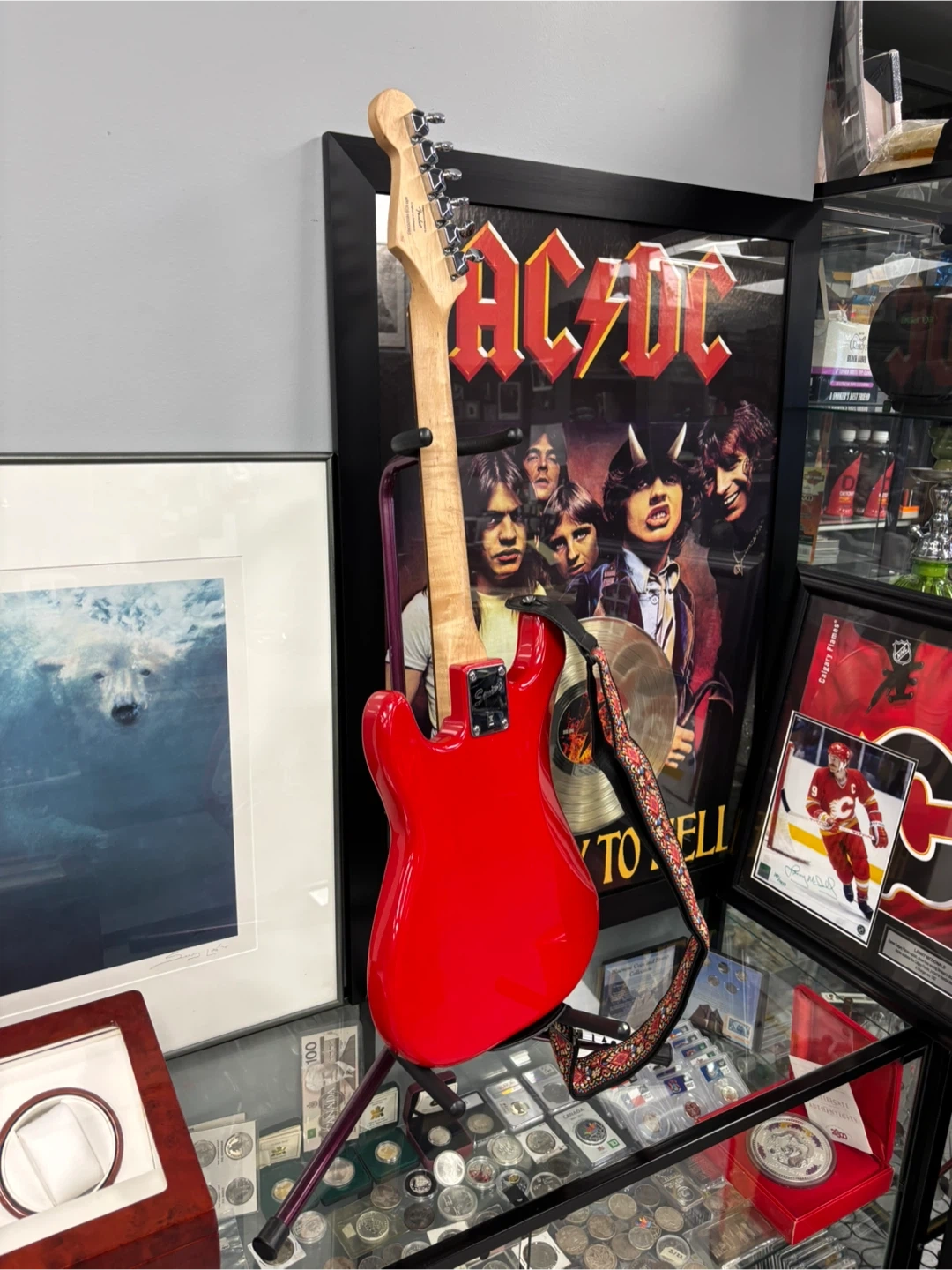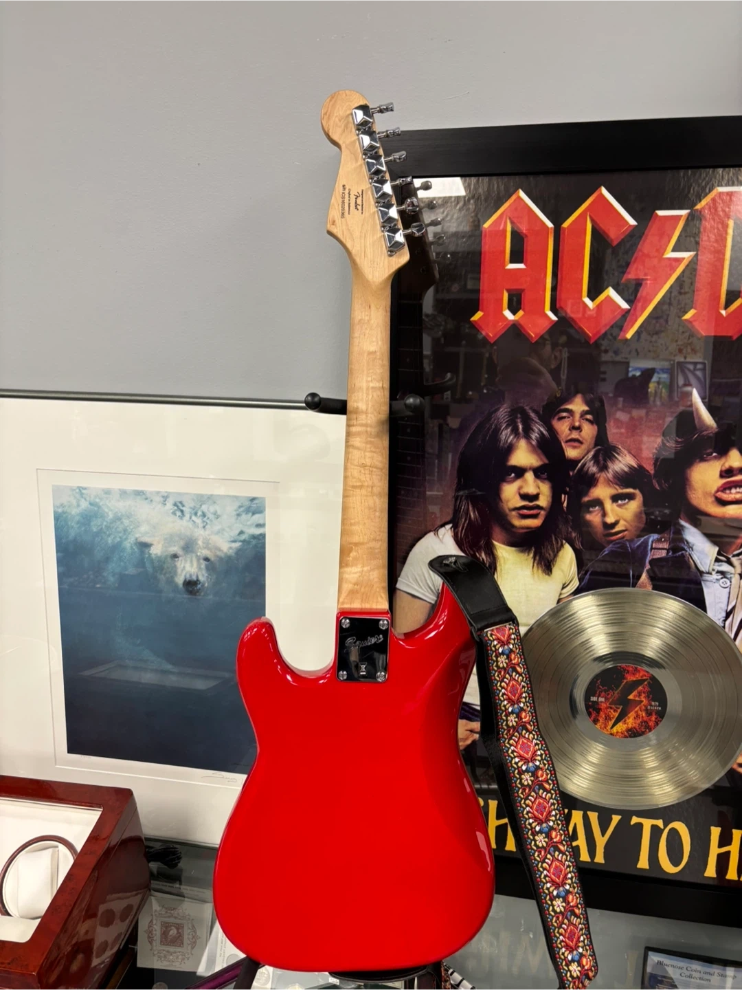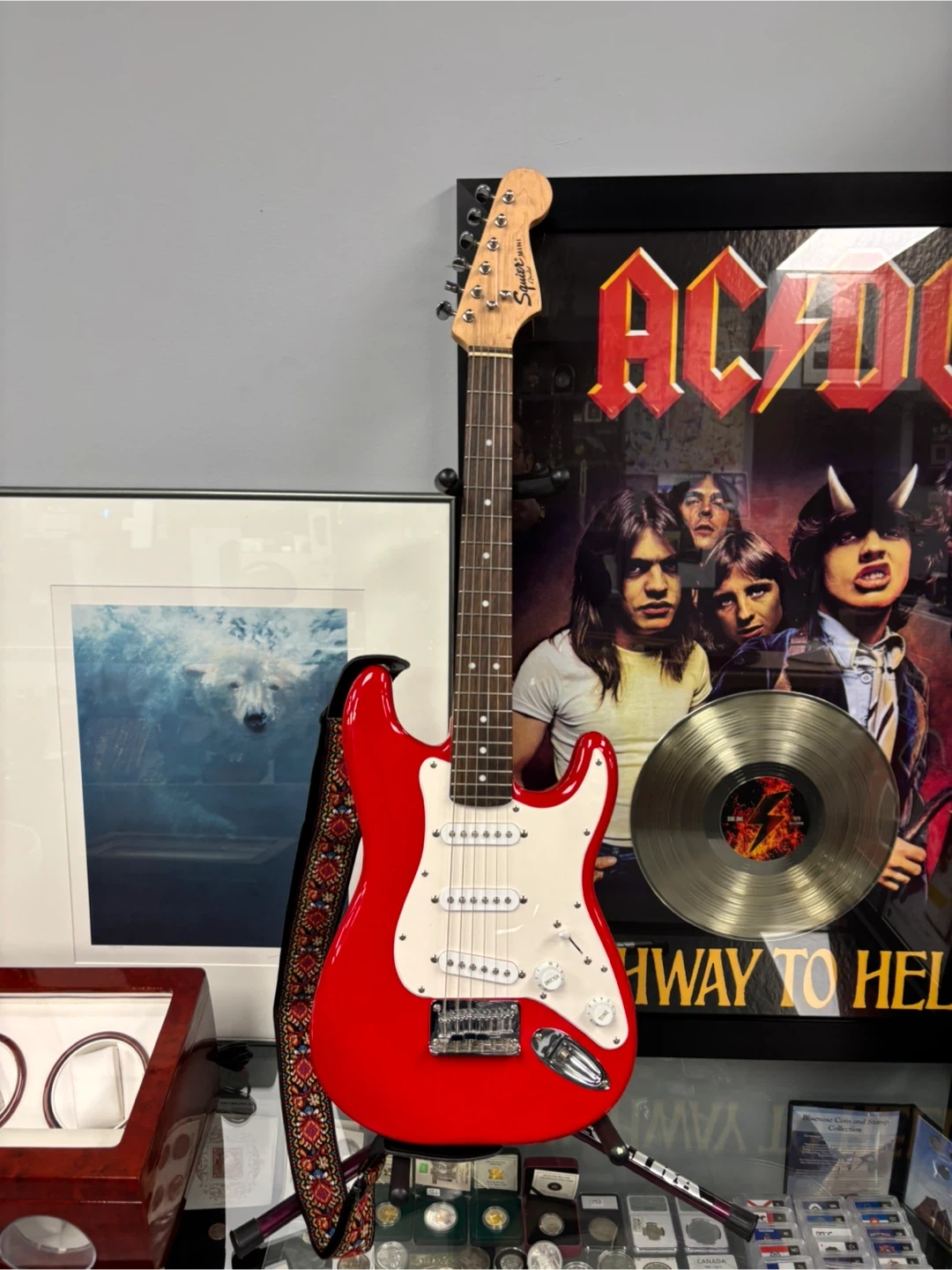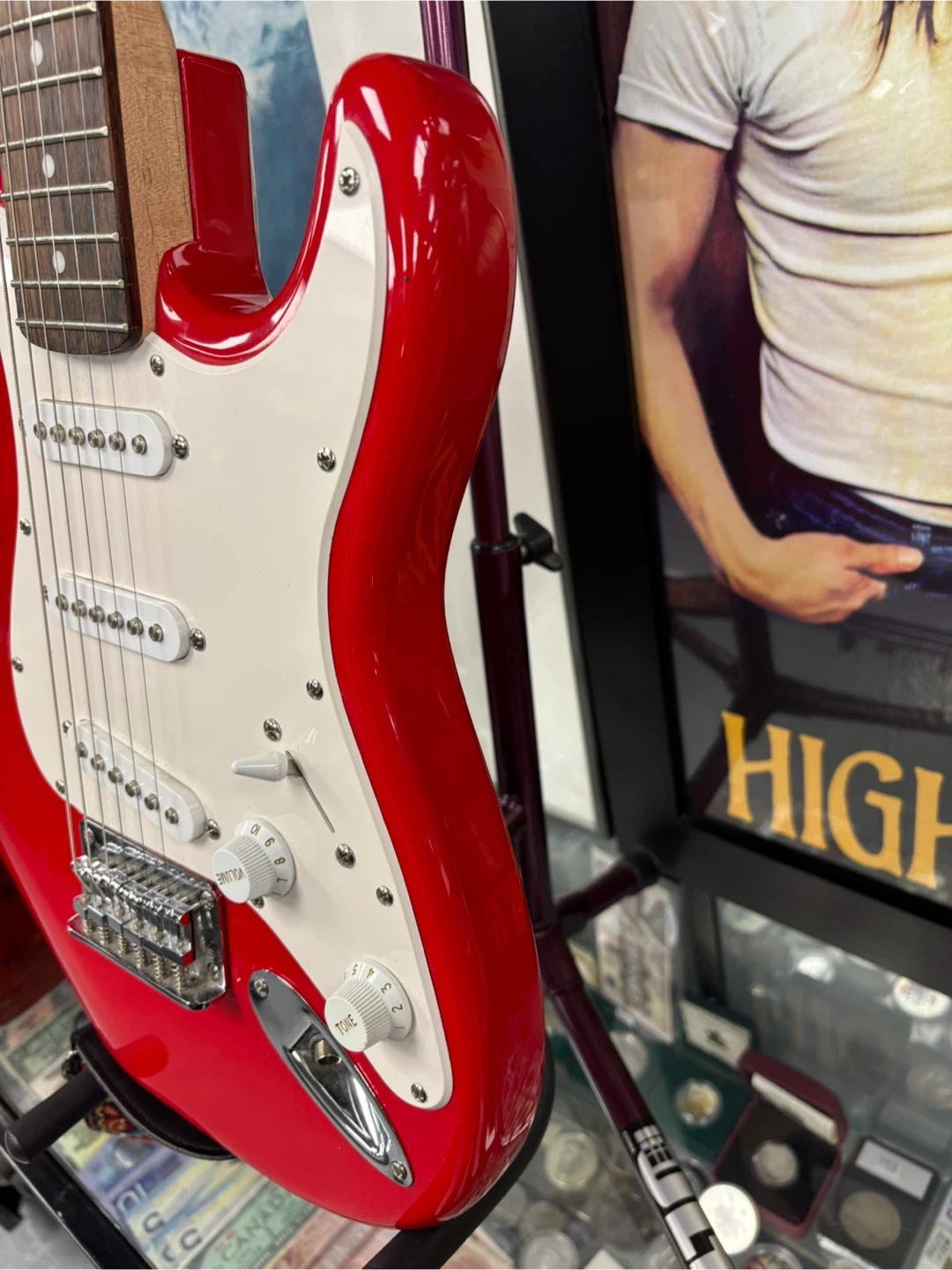 Selling a Squier Mini Strat electric guitar! It's in great condition and ready for a new player. The guitar is red and white. if you like to come and view the instrument before purchase, I am located at.410 16 Ave NE Trans-Canada Building free parking in the back