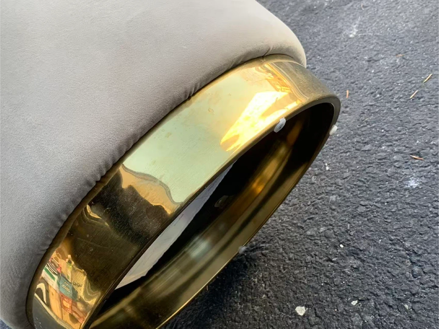Selling a cute beige velvet ottoman footstool! It's in great condition and would look great in any room. The base is a shiny gold colour