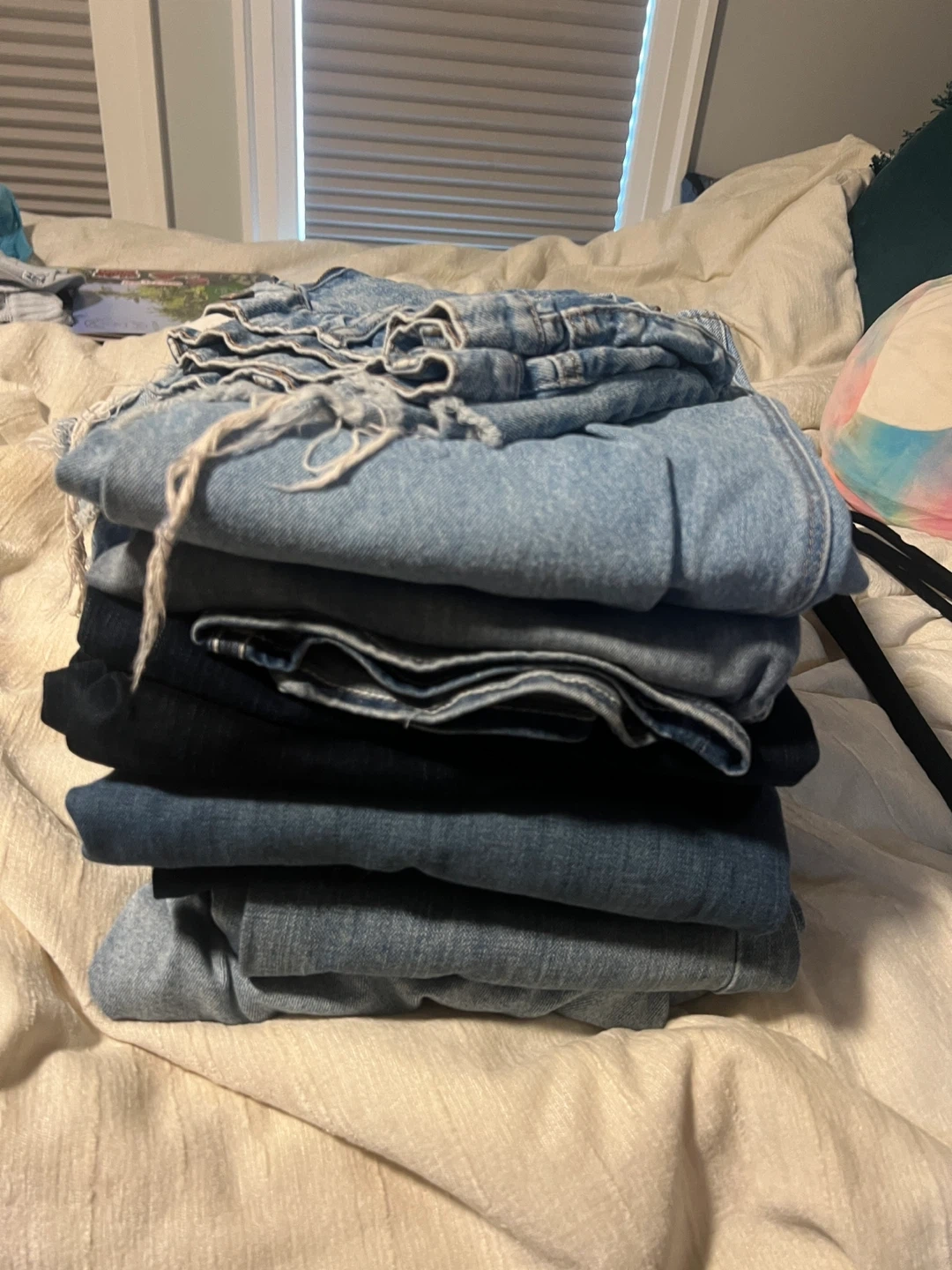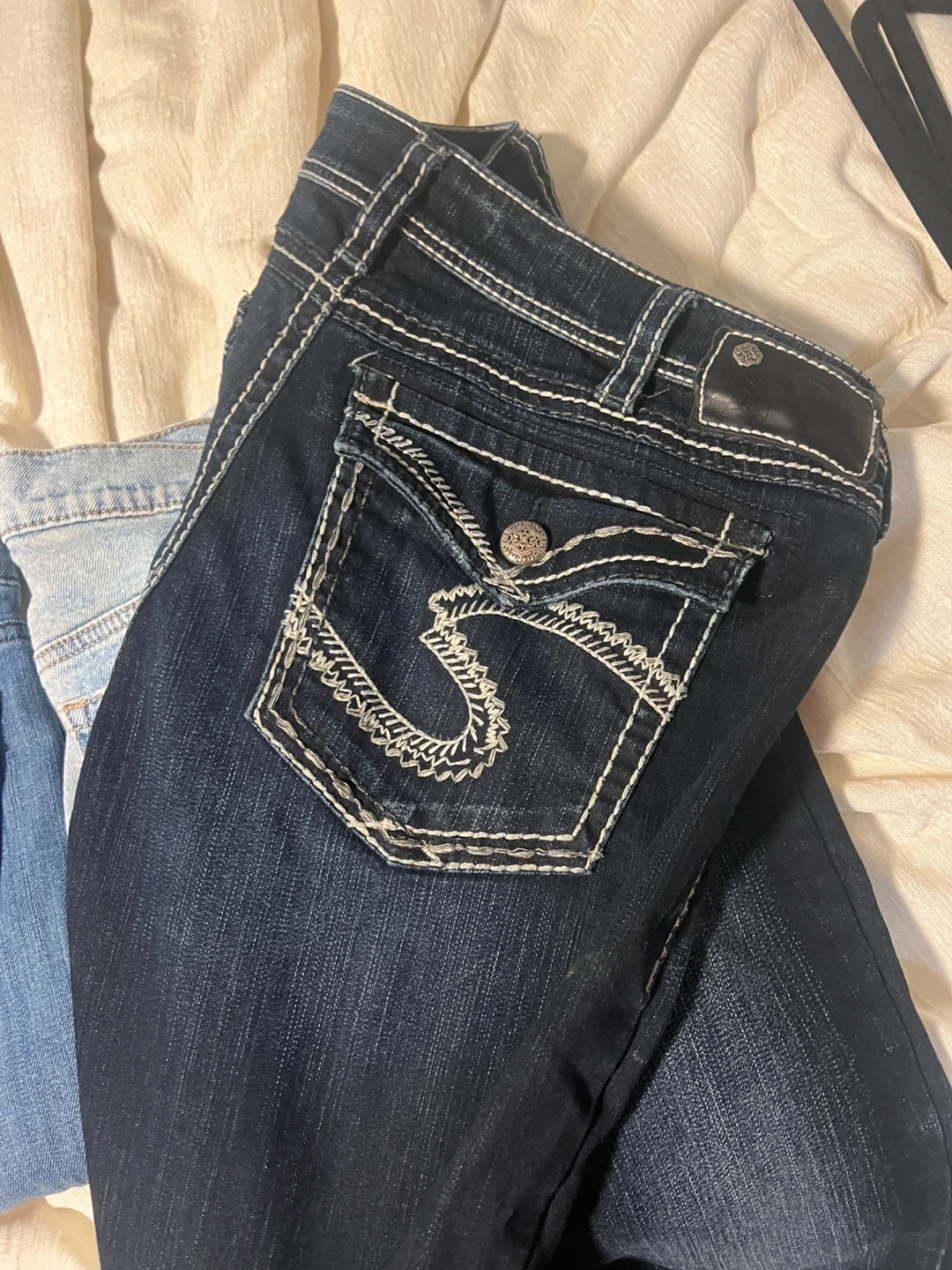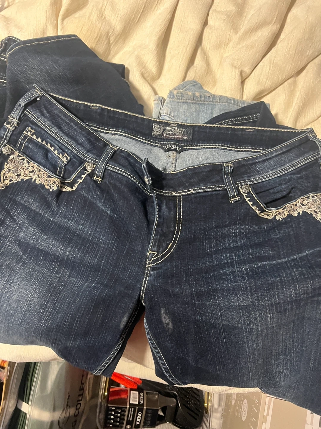 All name brand jeans including true religion, rock revival, American eagle, silver jeans. Just do not fit unfortunately. Selling as a bundle only! Sizes range from 33-36 & 8-10