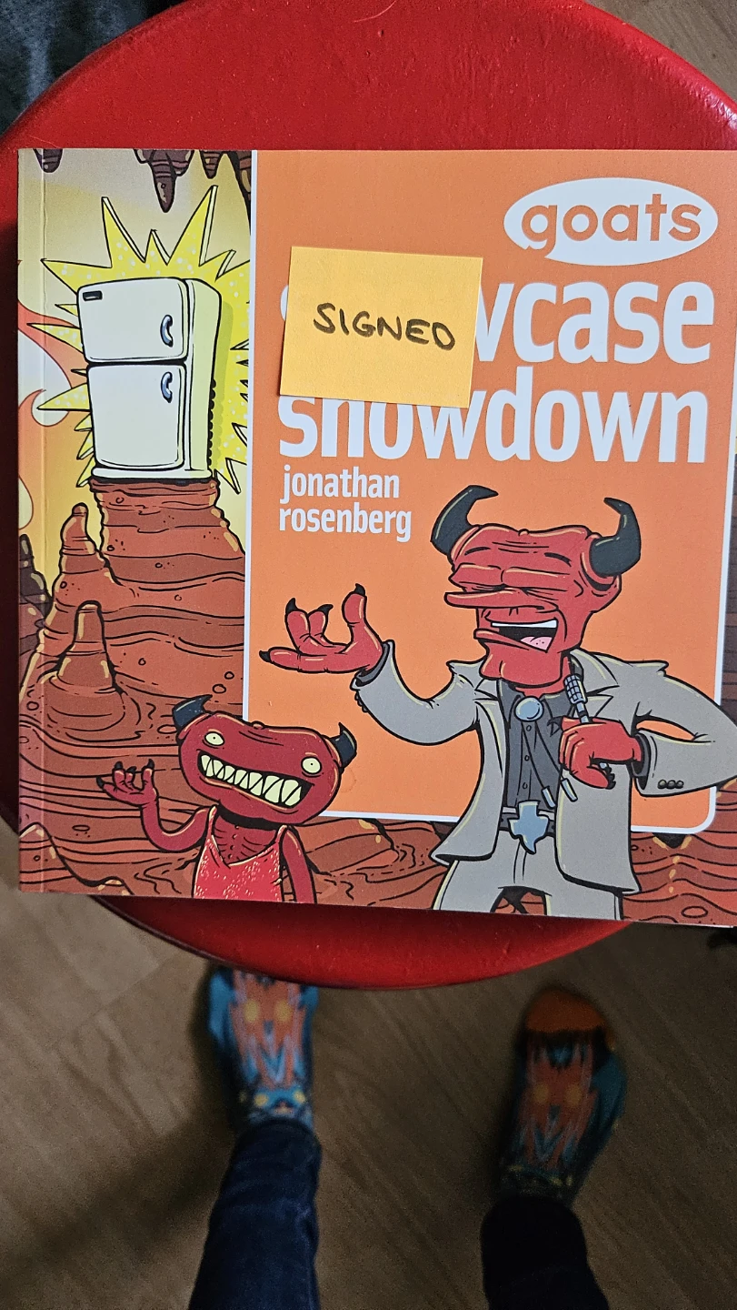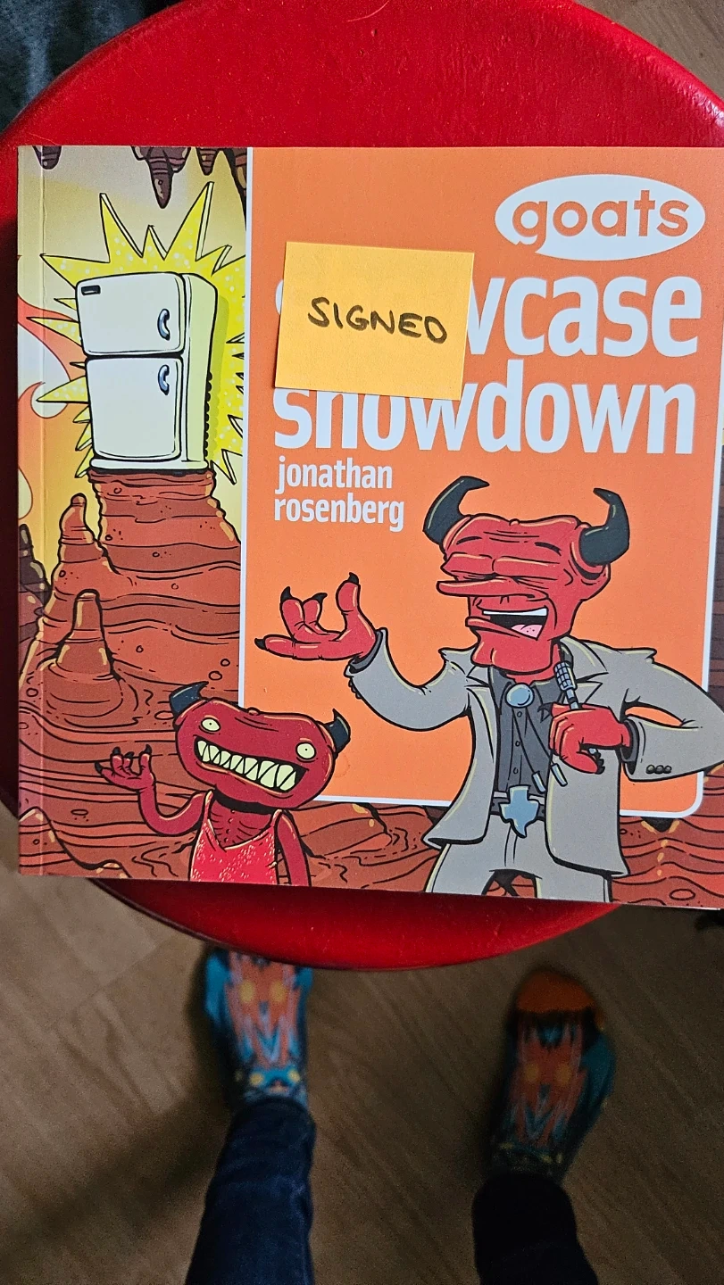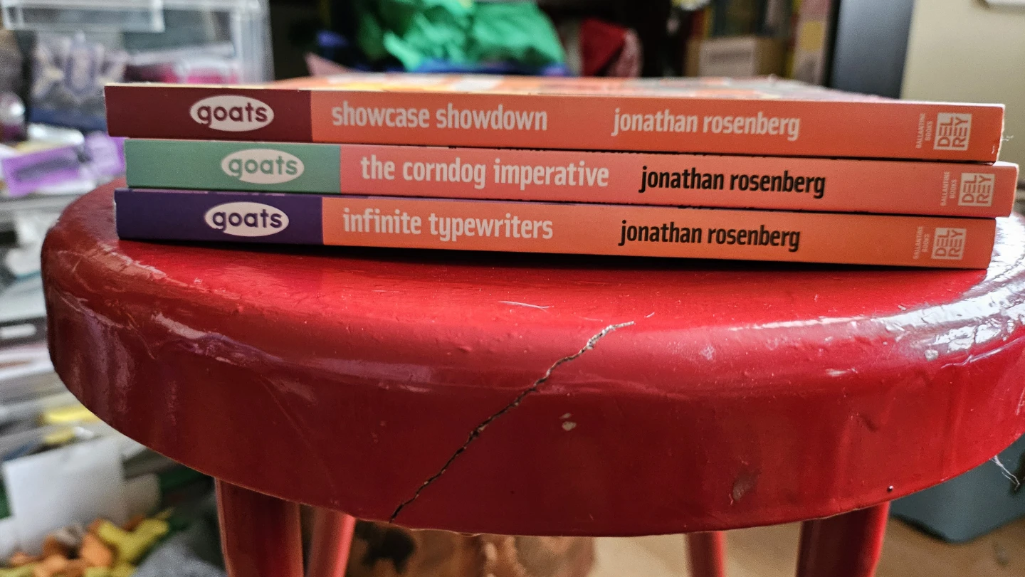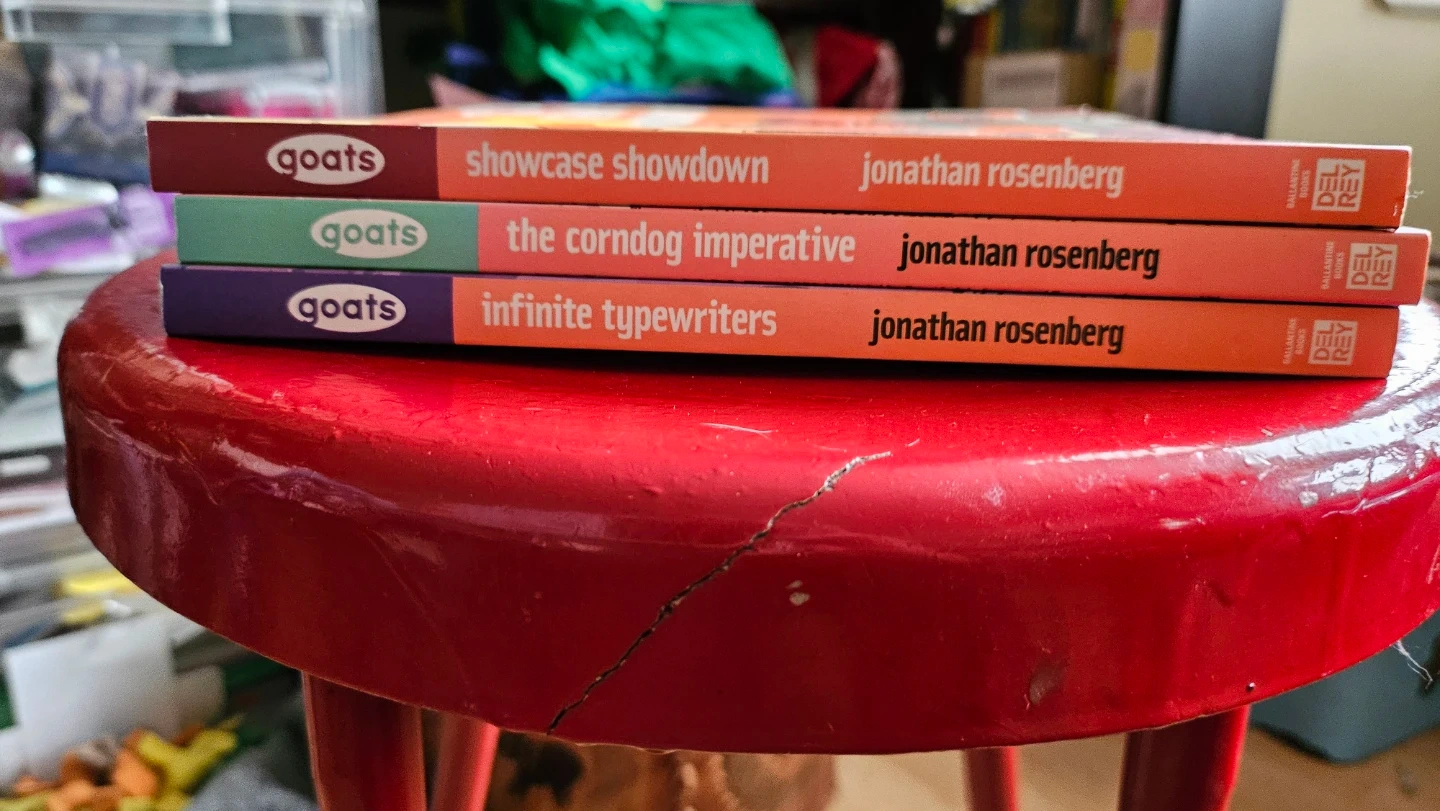 MAKE OFFER!!! A set of books from the 'Goats' series by Jonathan Rosenberg. Includes 'Showcase Showdown', 'The Corndog Imperative', and 'Infinite Typewriters'. All are signed!