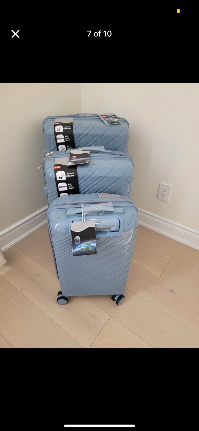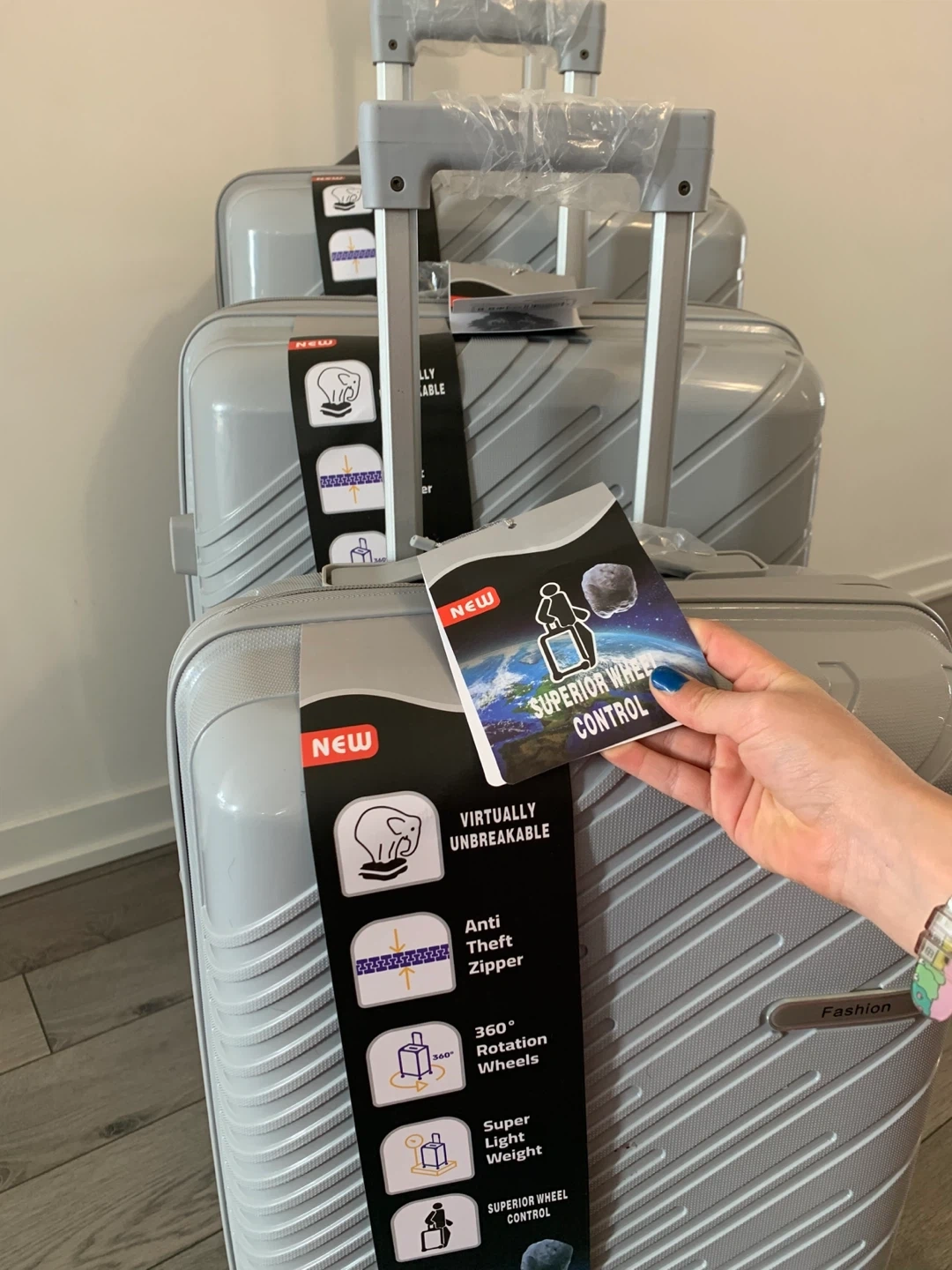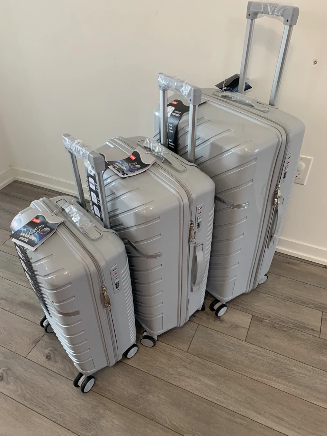 Selling a grey hardside suitcase! It's in great condition and ready for your next trip. It has wheels and a combination lock, and the box is included
