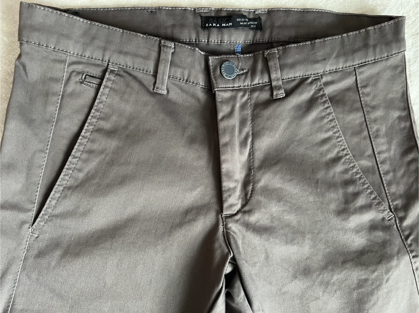 Selling a pair of NEW Zara Man pants. Slim fit with stretch. They're a very nice neutral grey colour with a slight elegant sheen, perfect for dressing up or down. Size 29. Never worn. Purchased wrong size.