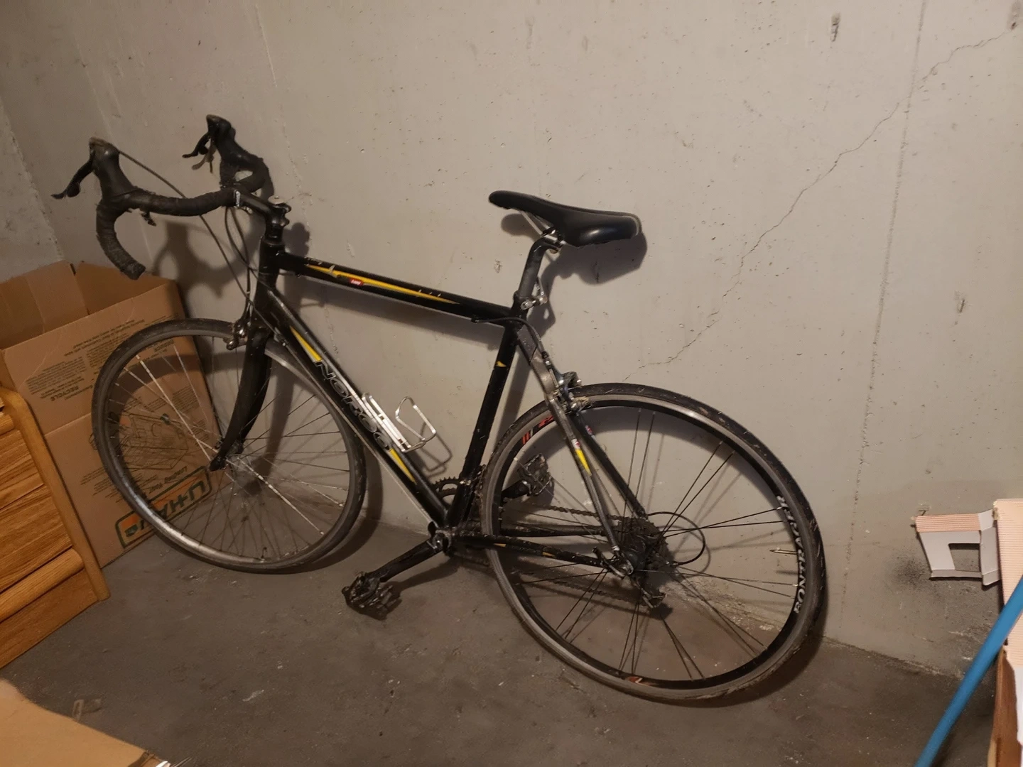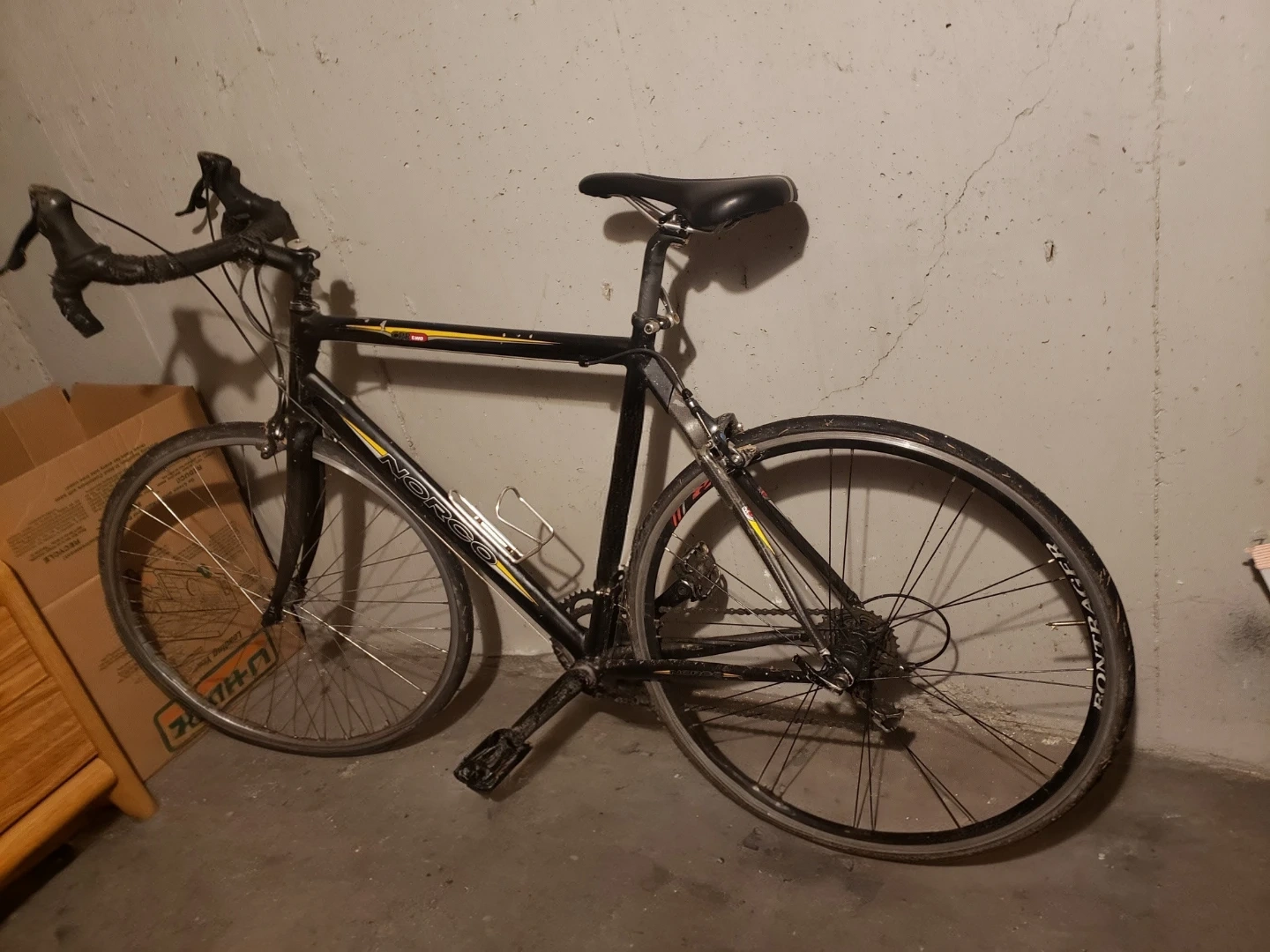 Selling a Norco CRR road bike. It has a black frame and would be great for someone looking for a reliable ride around town but the back tire in unfortunatly flat. Would be an easy fix. Asking 200 obo