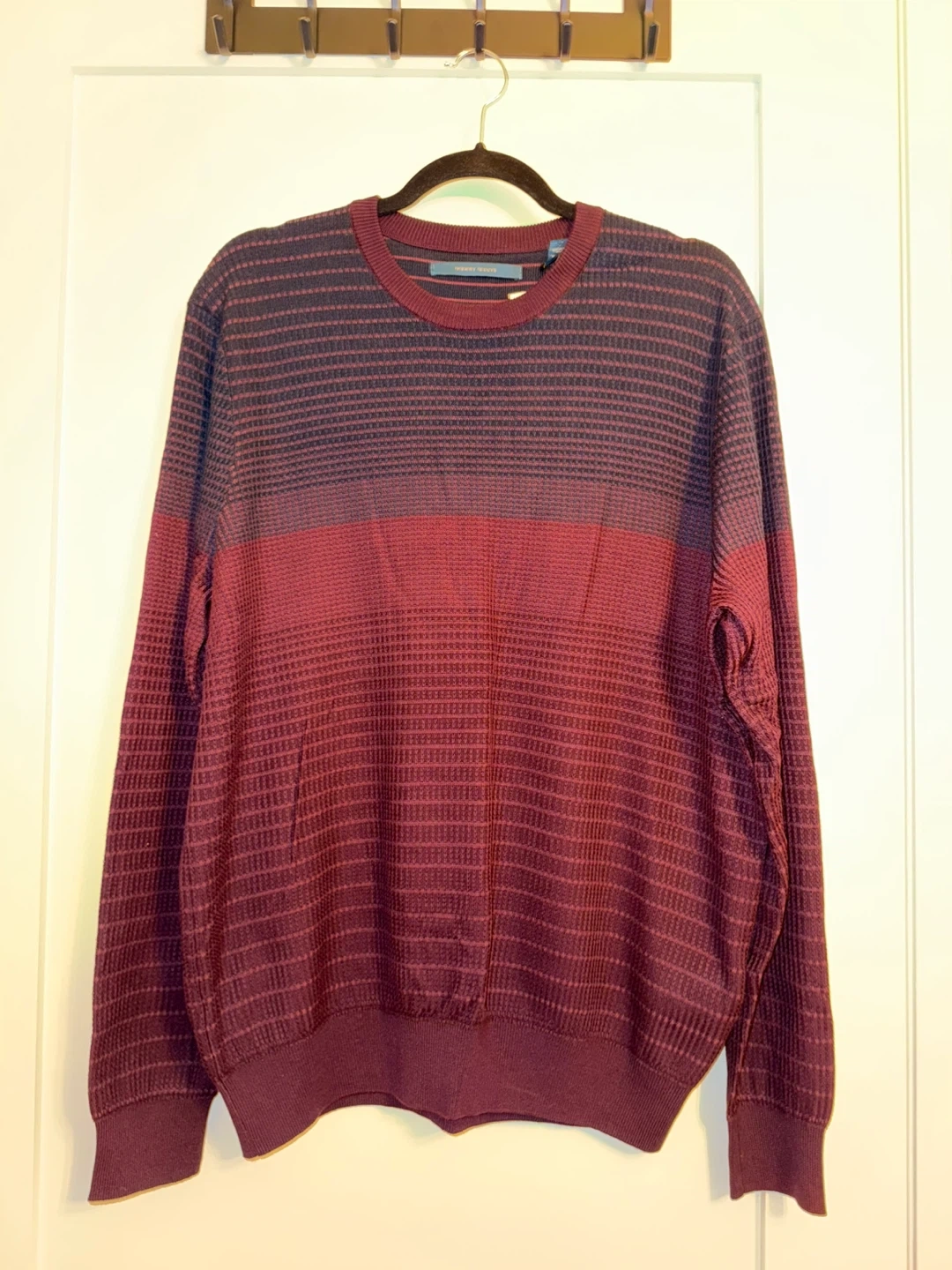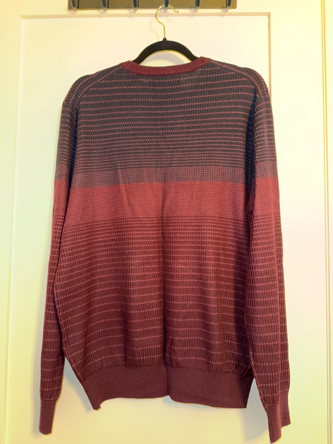 I'm selling a new Perry Ellis sweater, still with tags attached! It's a size XL and features a nice burgundy colour gradient. Originally bought for $85!