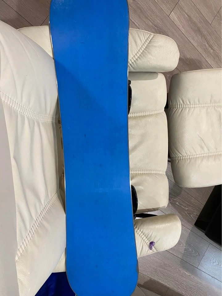 Kids Never Summer snowboard with Flow bindings. 100cm length. Black bindings with blue accents. Great condition, used maybe 5 times total.