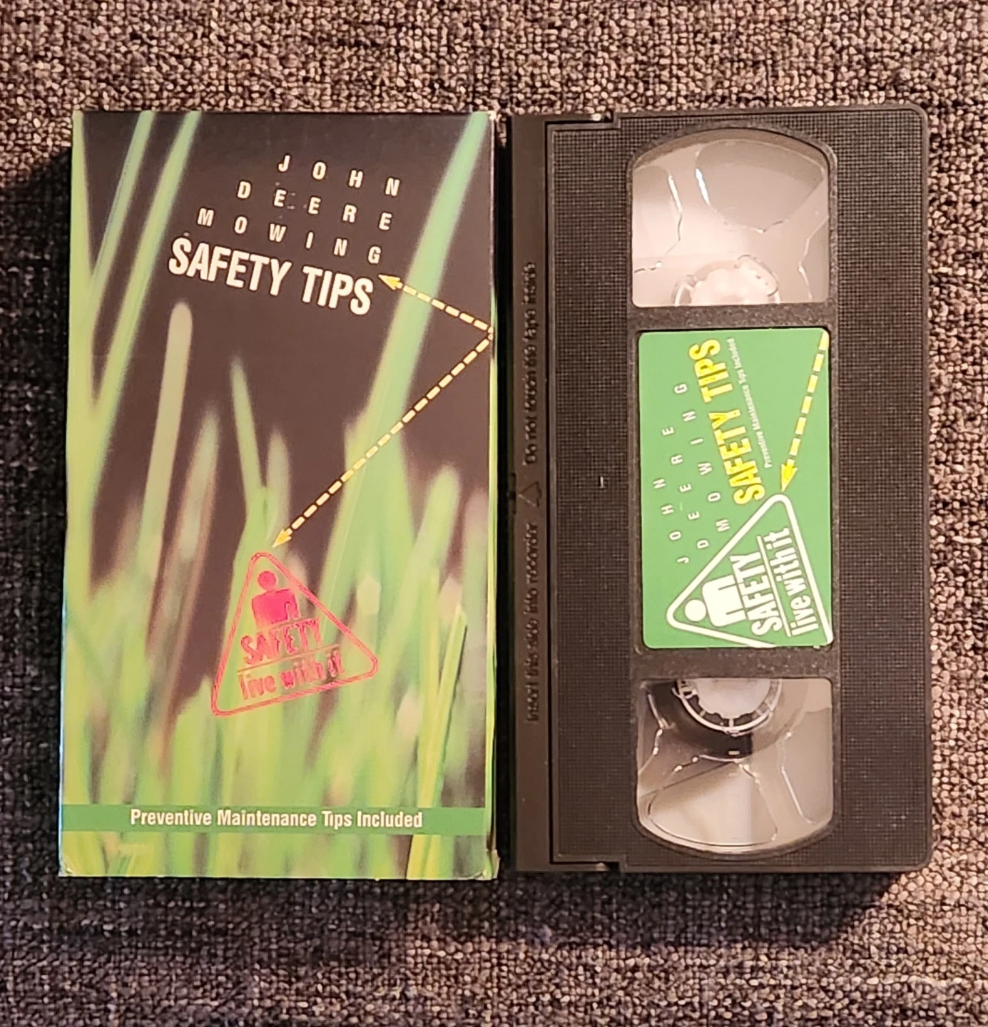 Selling a John Deere Mowing Safety Tips VHS tape. It comes with the original box. Perfect for anyone who wants to learn more about lawn mower safety!