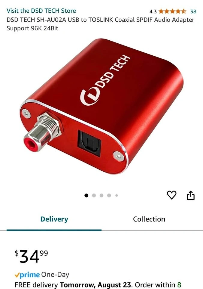 DSD TECH USB to TOSLINK Coaxial SPDIF Audio Adapter