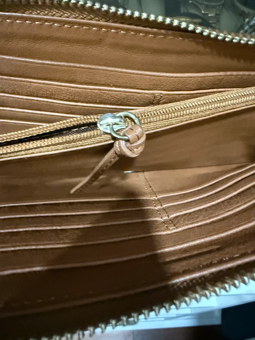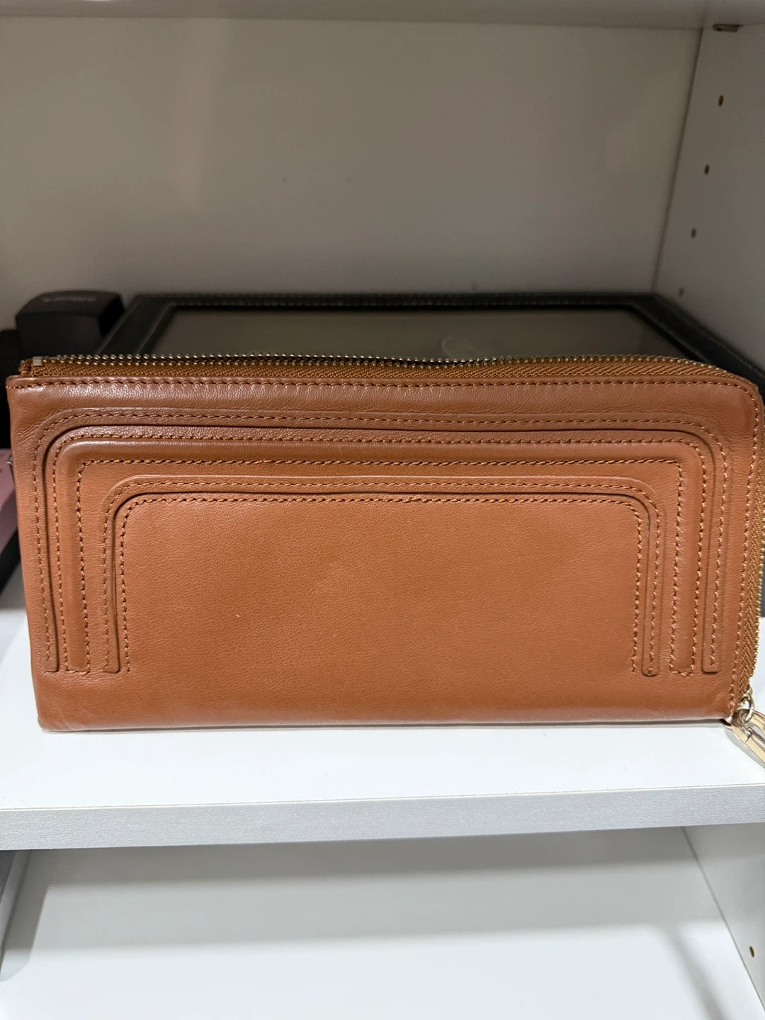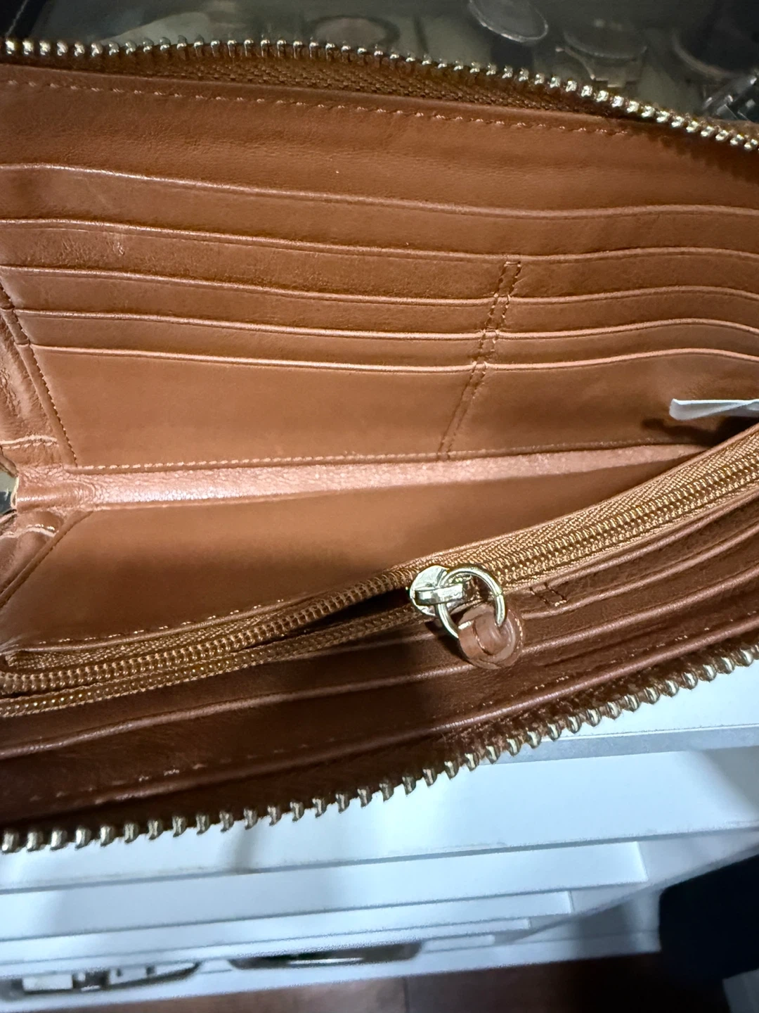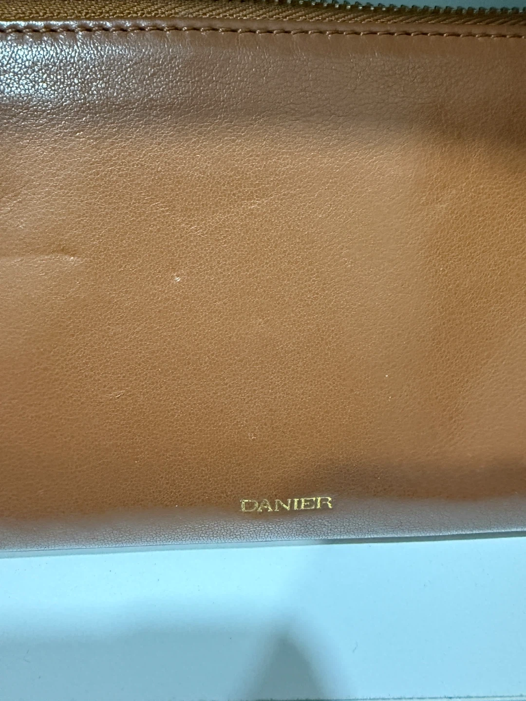 Selling a gently used brown leather wallet from DANIER. It has a zippered closure and plenty of slots for cards and cash. The wallet is in great condition and perfect for everyday use