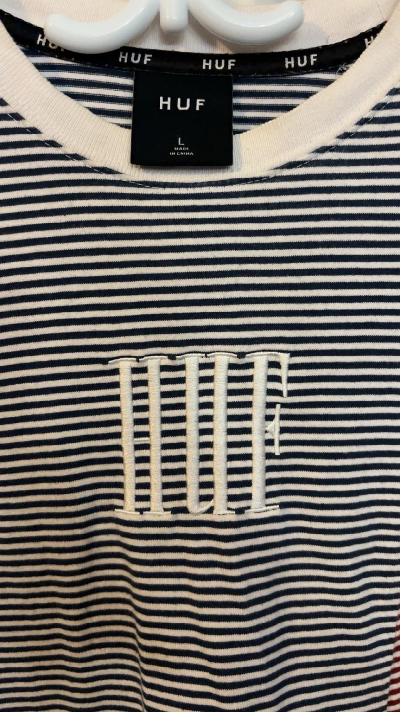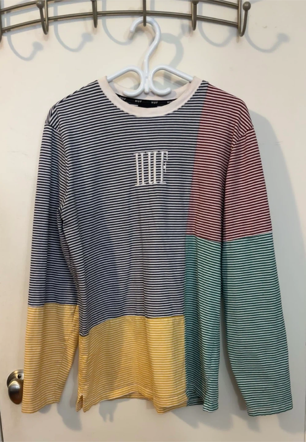 Y2K HUF Long-Sleeve Striped -Size L. Please note this is a form fitted large. $15 cash, porch pick up Kennedy and Eglinton.