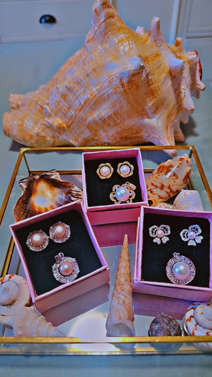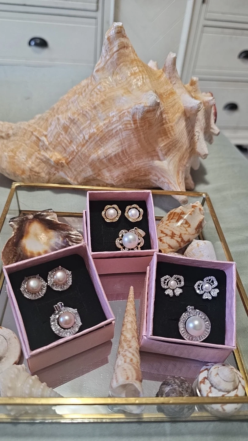 Here's a beautiful set of fresh water , high quality pearl earrings and pendants! They come in three different styles, each carefully stored in its own box. These would make a lovely addition to any jewelry collection, or a thoughtful gift for someone special $55 per set