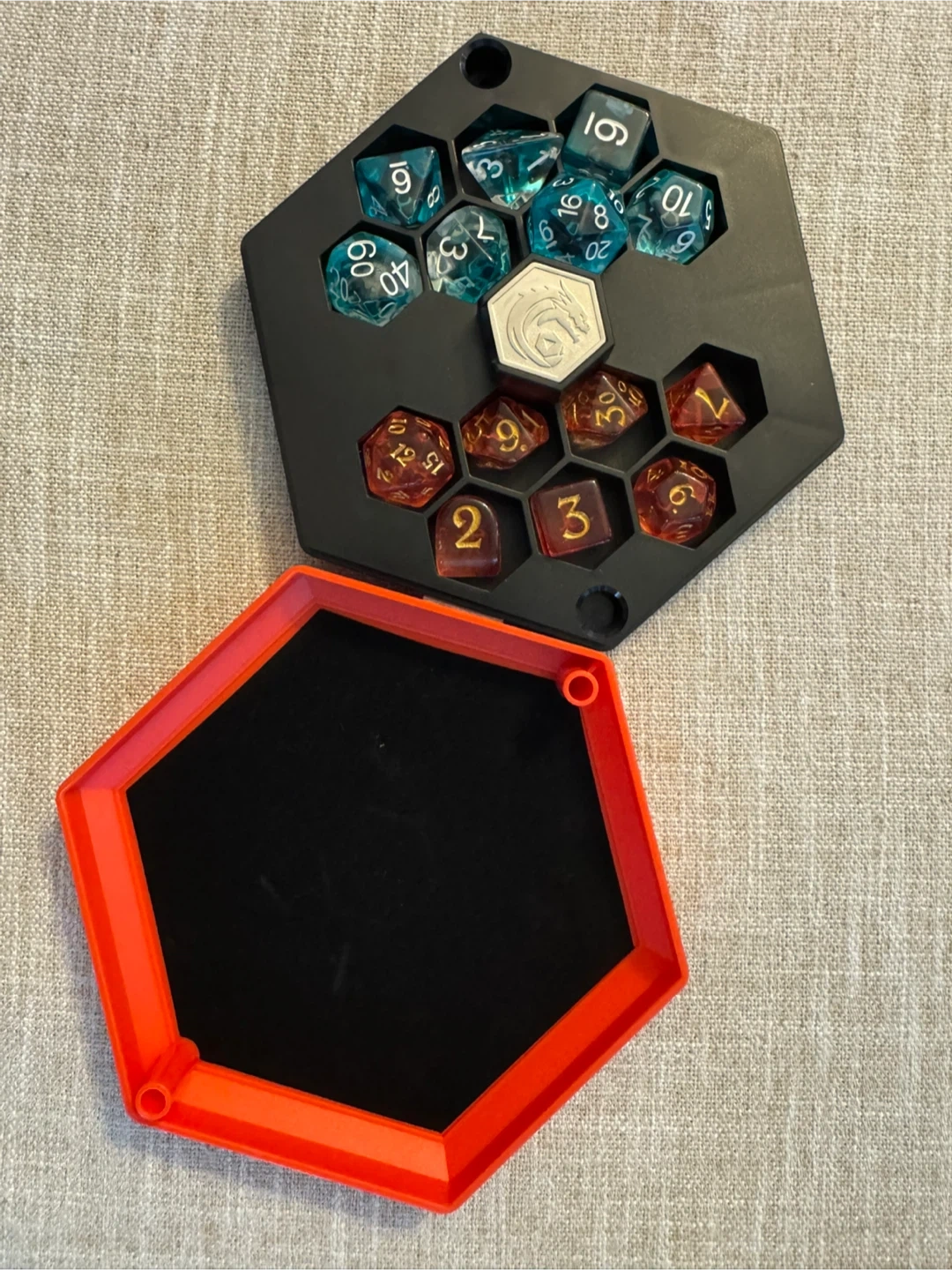 Selling a brand new Campaign Dice Deluxe Dice Set! This set includes a custom RPG coin and 14 dice. The dice come in a cool storage case with molded indents to keep them secure. Perfect for your next D&D adventure!