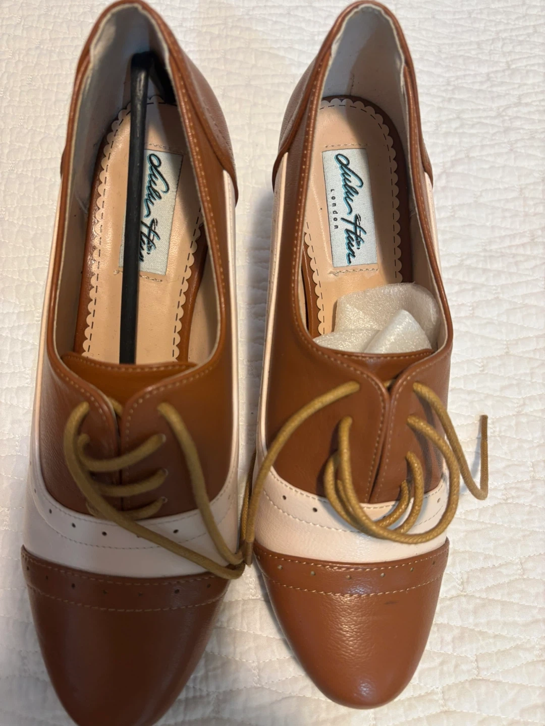 These are a pair of Chelsea Crew London oxfords in a lovely brown and cream colour. They look to be in great condition and would be a stylish addition to any wardrobe! Brand New and bought from Europe