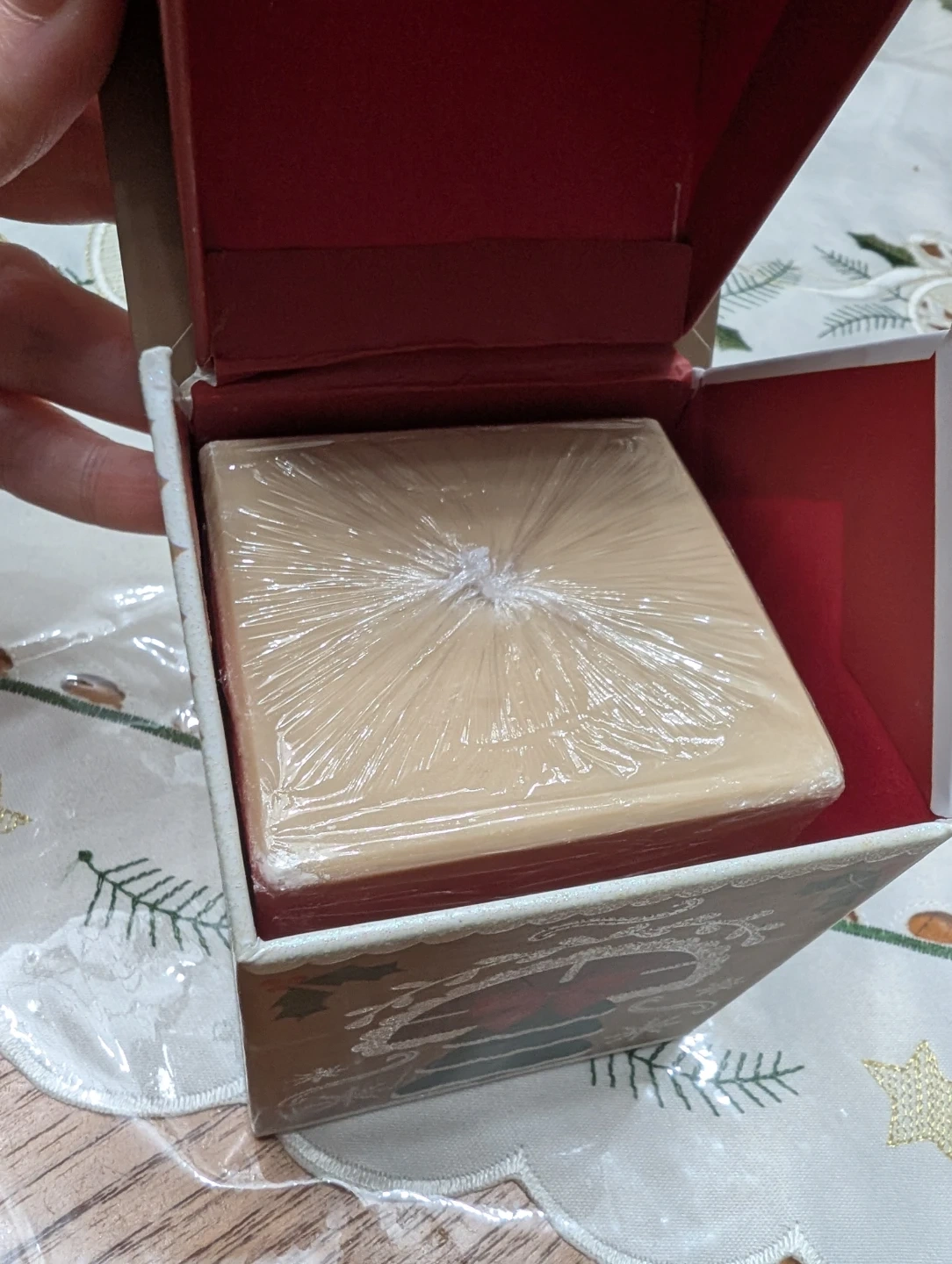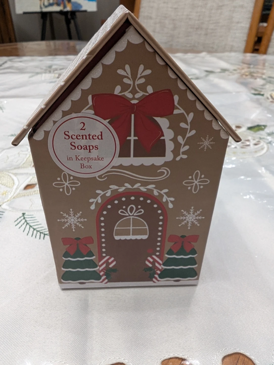 Selling a set of 2 scented soaps in a cute keepsake box! The box is shaped like a gingerbread house, making it a perfect gift or decorative item for your home. The soaps are still sealed in plastic wrap inside the box.