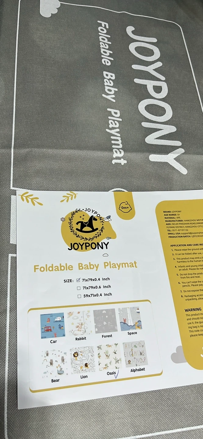 I'm selling a JOYPONY Foldable Baby Playmat! It's in great condition and comes in a convenient carrying case. The playmat features a fun jungle animal design on one side.