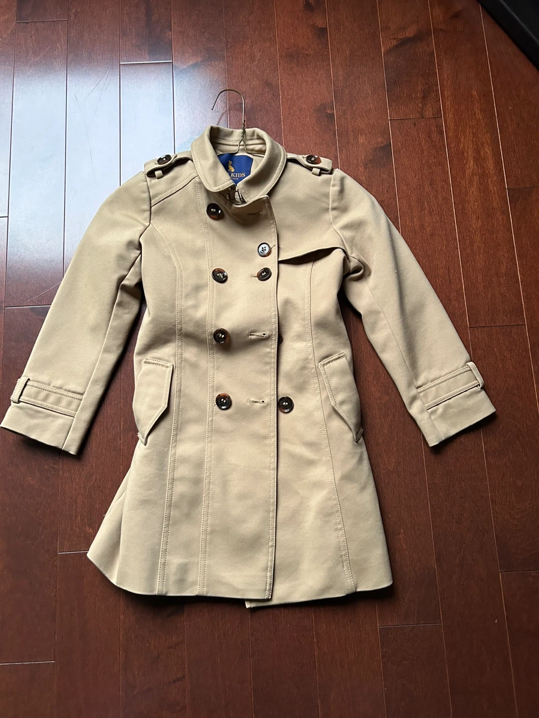 Here's a classic trench coat for kids! It's in great condition and ready for a new owner. Perfect for spring or fall weather