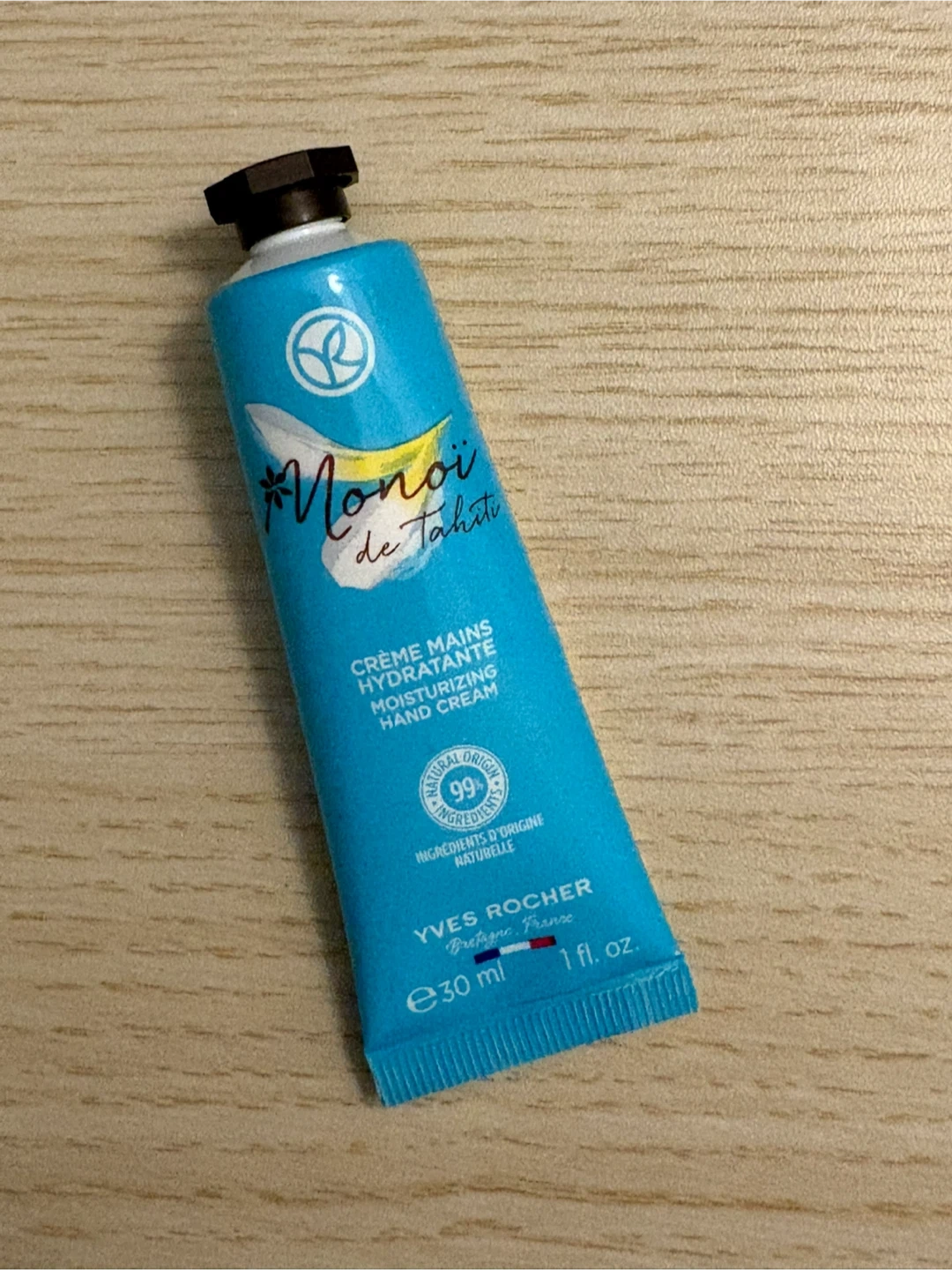 30ml Yves Rocher Monoi de Tahiti moisturizing hand cream. This hand cream contains 99% natural origin ingredients. Lovely and nostalgic scent.