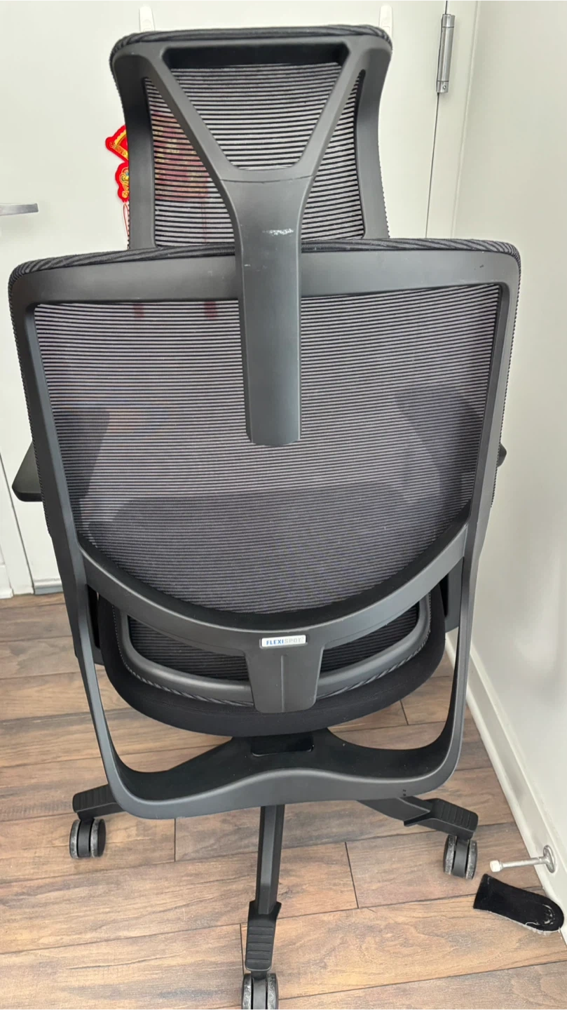 Selling a FlexiSpot ergonomic office chair in black. It's in great condition and ready to provide comfortable support for your workday. The mesh back allows for breathability, and the adjustable features ensure a customized fit. Perfect for home or office use!