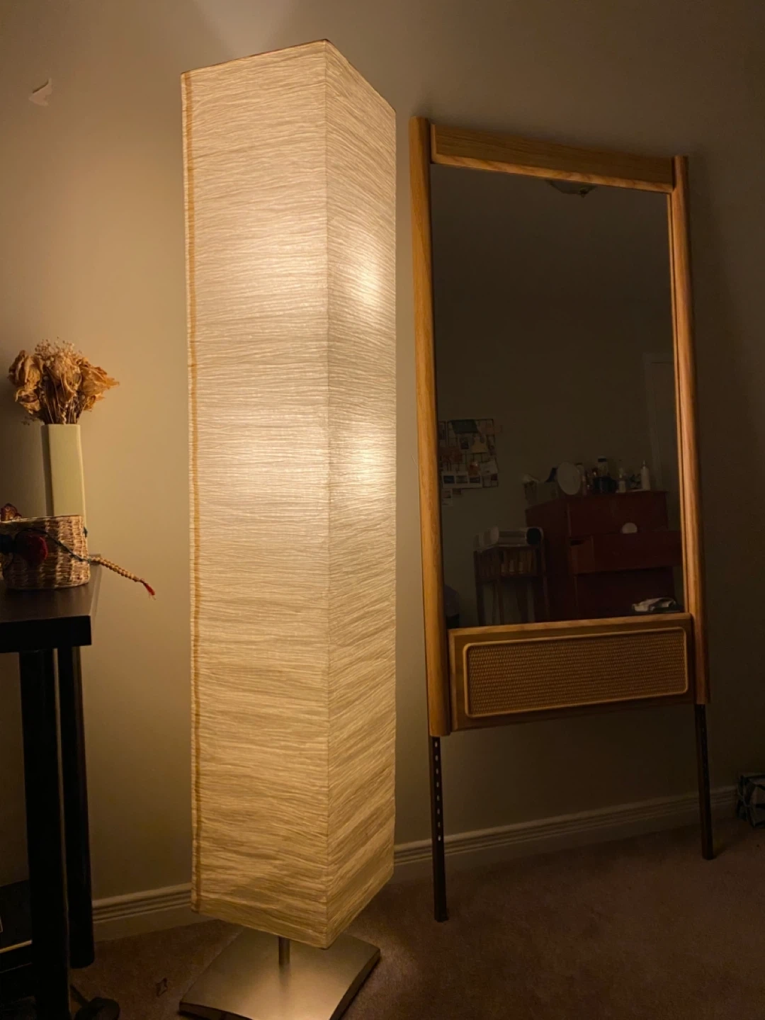 Good condition, tall paper lamp - can be used for living room or bedroom decor.