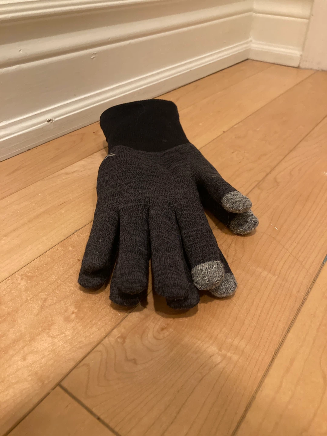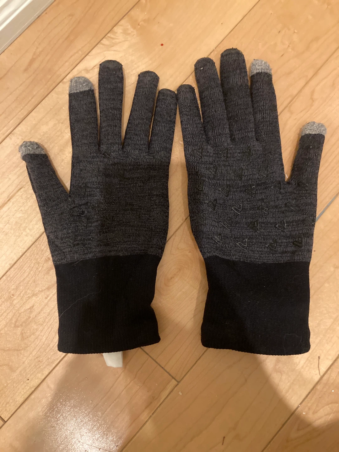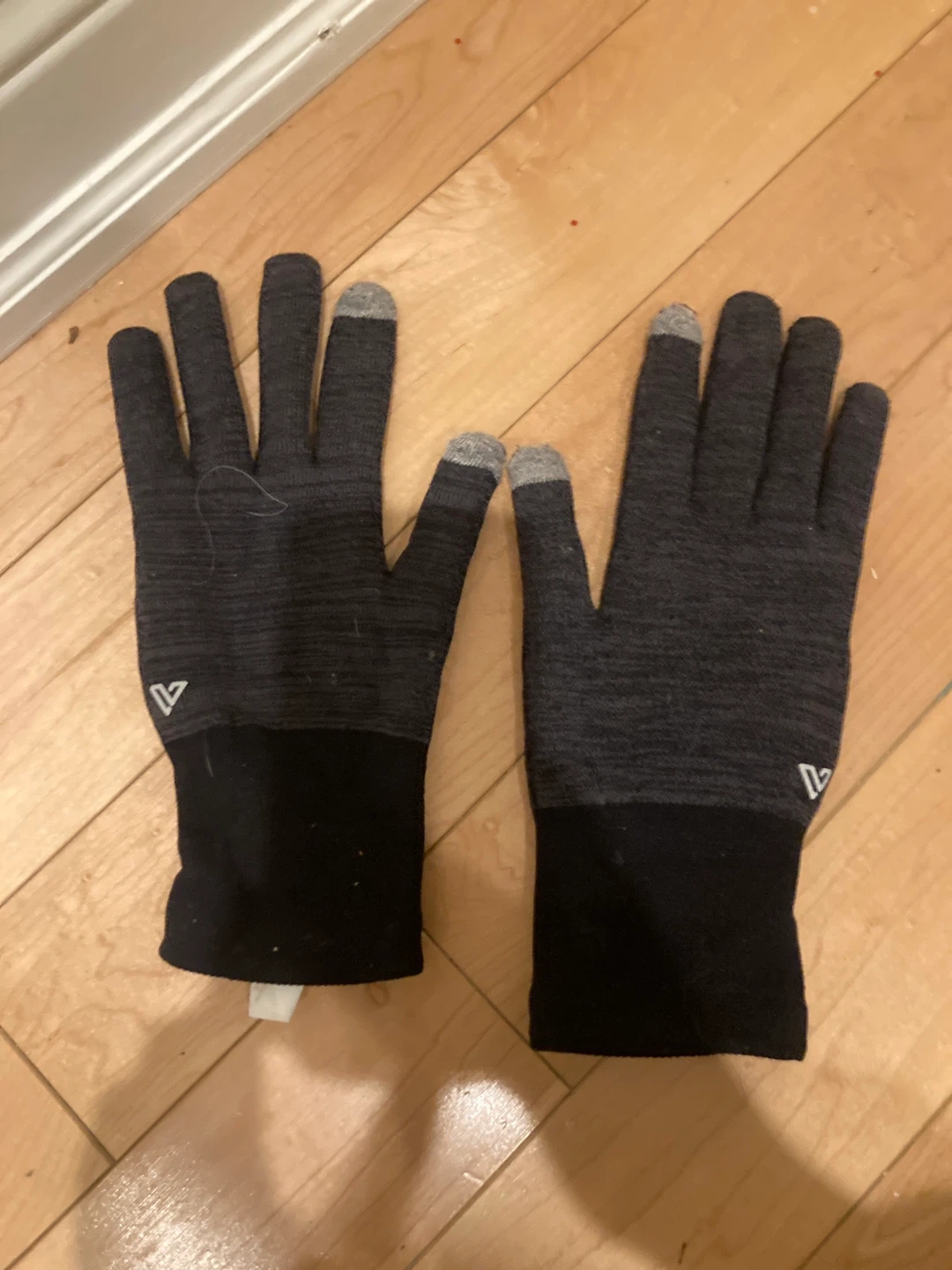 Selling a pair of New Balance touchscreen gloves in grey! They're perfect for keeping your hands warm while still being able to use your phone. The gloves are in good condition.