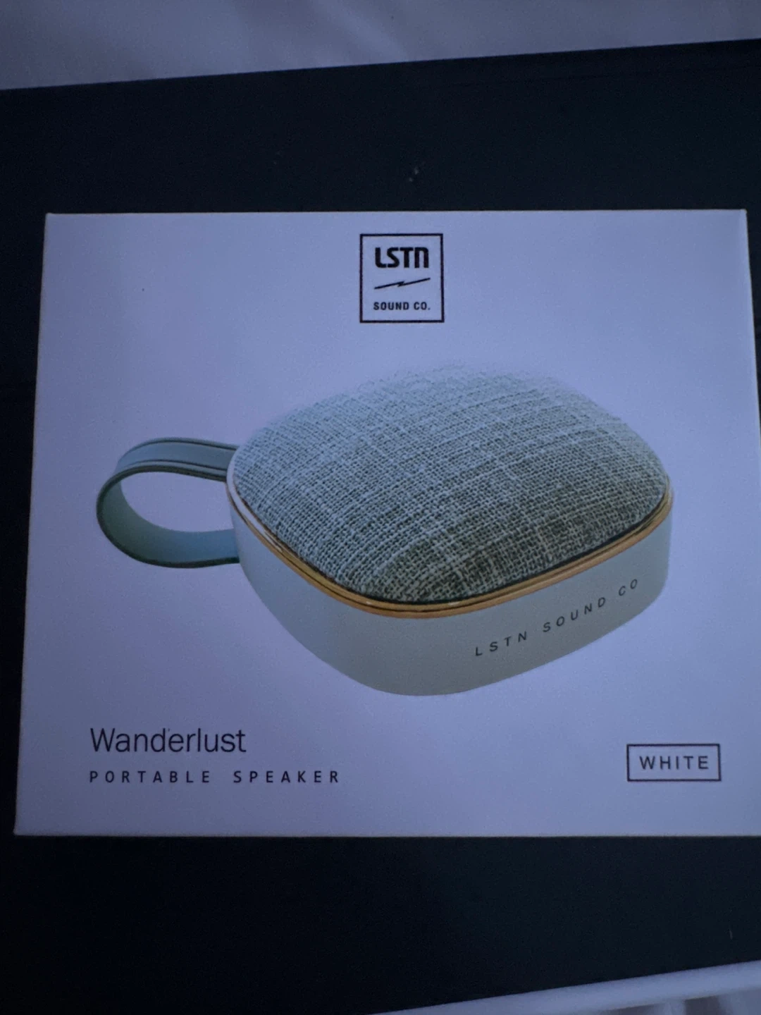 Selling a LSTN Sound Co. Wanderlust portable speaker in white! It comes with its original box and includes a USB cable and AUX cable. Great for taking your tunes on the go brand new.