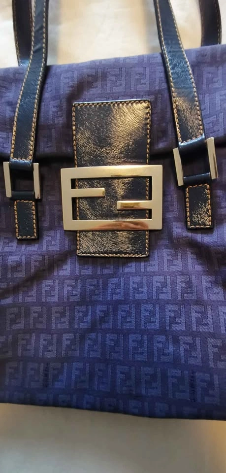 Fendi Tote Bag – Authentic – Vintage Zucca Pattern – Navy Blue