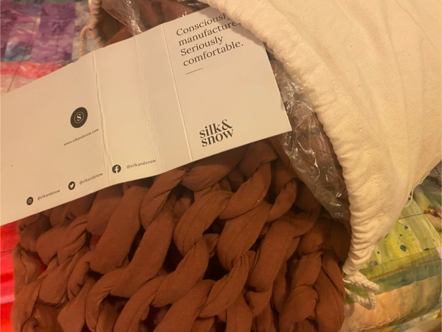 Selling a Silk & Snow chunky knit blanket! It's a beautiful, seriously comfortable blanket, consciously manufactured. Comes in its original bag!