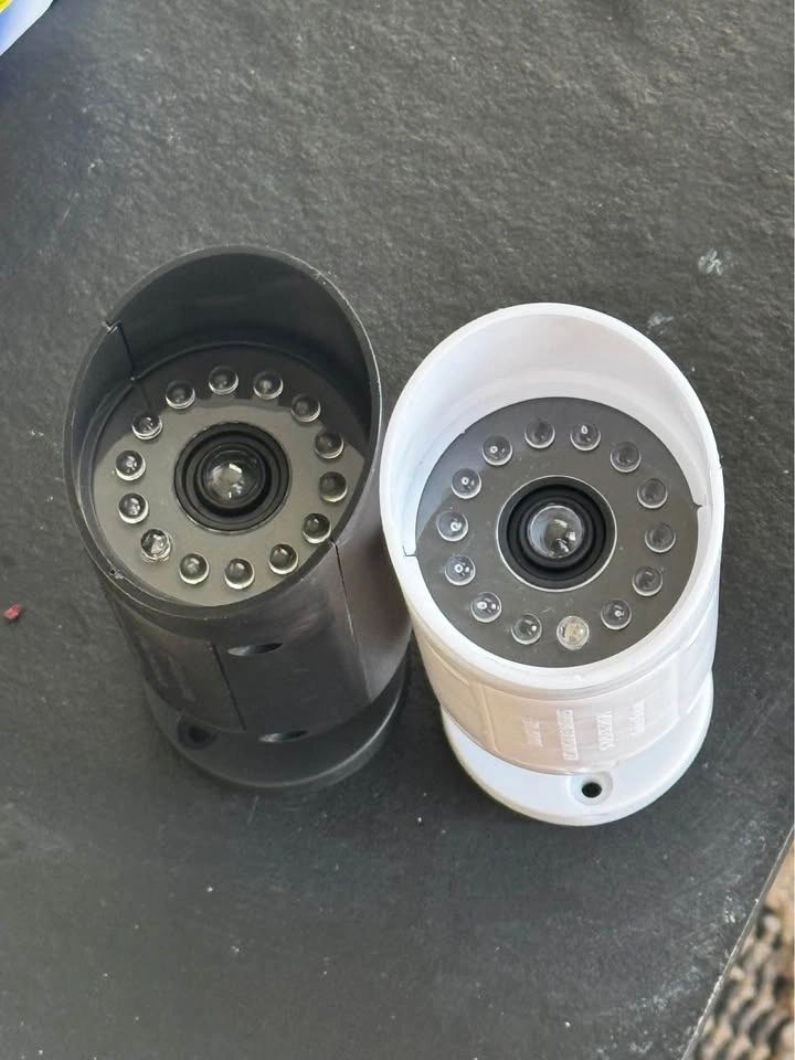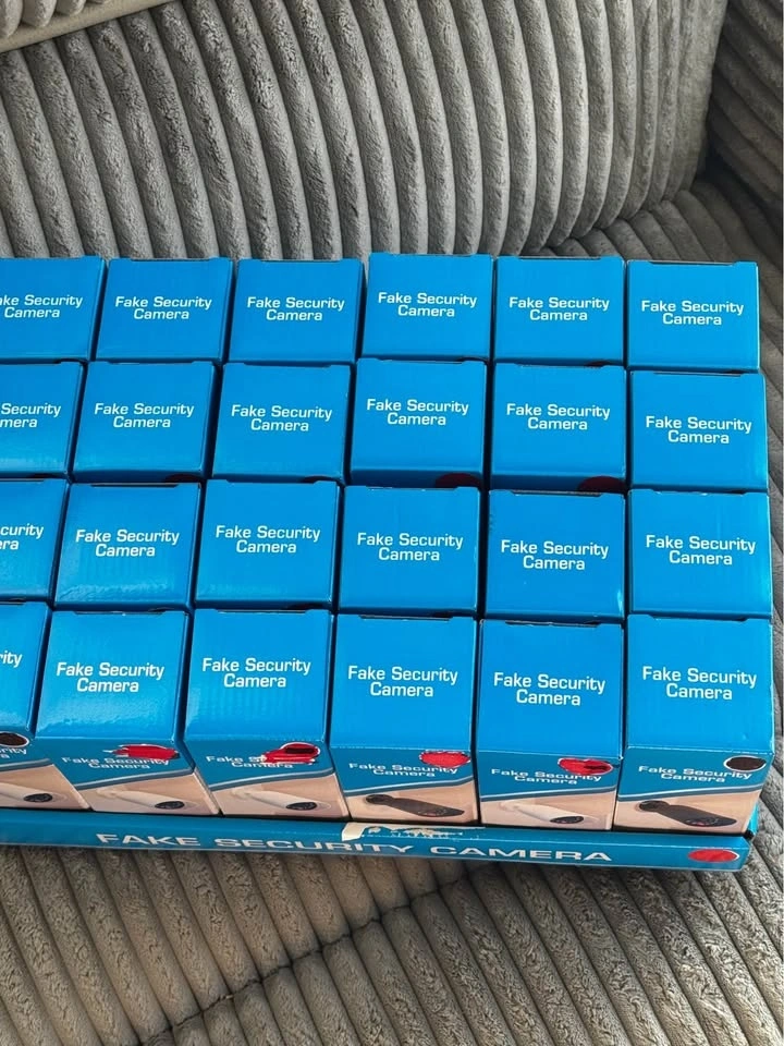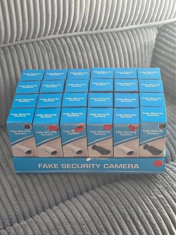 A brand new set of 5 dummy or fake cameras for only $5. Screw then in anywhere you like using two small screws and install 2 AA batteries both not included, to bring on the LED lights and make them look even more modern, real and authentic. No wiring required anywhere and and can be installed and removed anywhere. Give your home or business a real sense of security and stop anyone stealing from you ever again. Local pickup is by Schaumburg and Barrington Road in Schaumburg IL 60194.