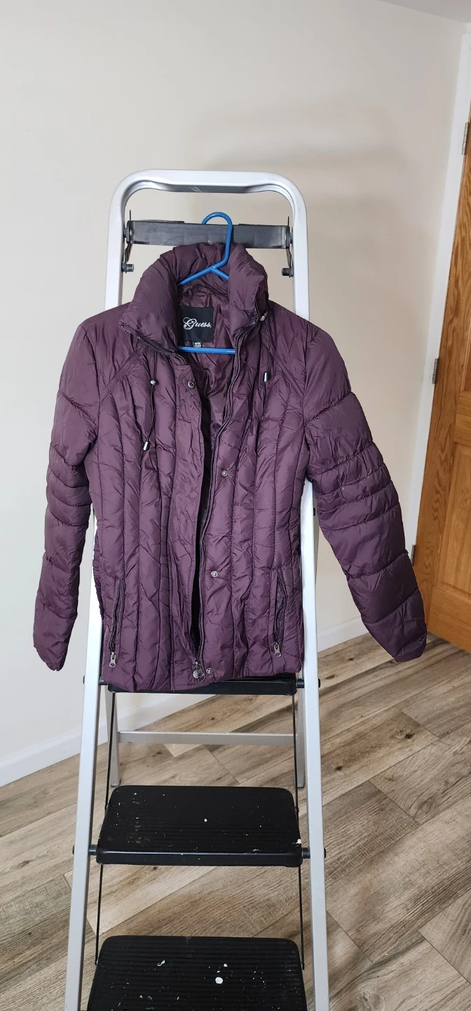 Here's a Guess DressBarn purple puffer jacket! It's in great condition and ready for a new owner. Perfect for staying warm and stylish during cooler weather