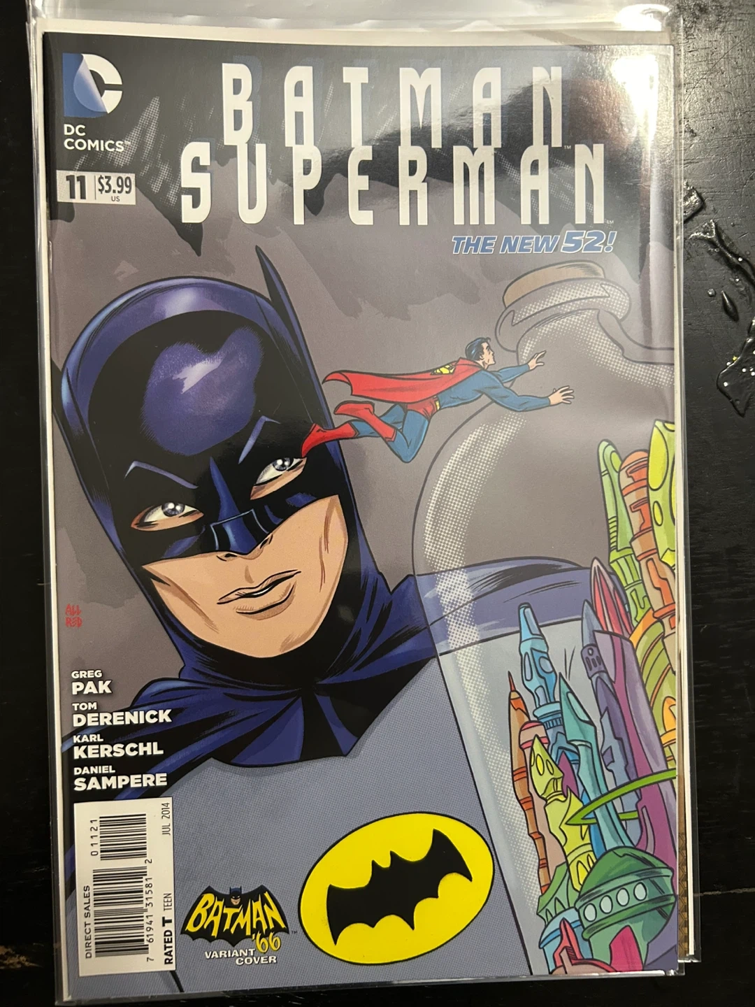 Buy & SellBatman Superman #11 Comic BookBatman Superman #11 Comic Book$15Selling a Batman Superman comic book, issue #11 from the New 52 series! This comic features a variant cover of Batman '66. It is rated T for Teen. The cover art is really cool!WHERE TO MEETCheck LocationView MapSELLERverifiedJohnSoundview650 reviews0 chats·0 favorites·4 viewsSEND CHAT TO SELLERHi John! I’m interested in your listing.Hi John! I’m interested in your listing.Get the Karrot app to chatSign In to chat
