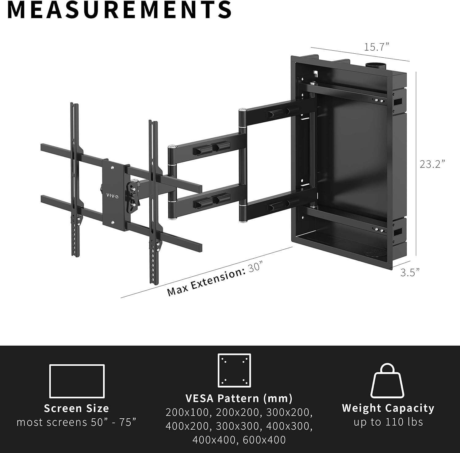 New VIVO Recessed 50 to 75 inch LED LCD TV Wall Mount