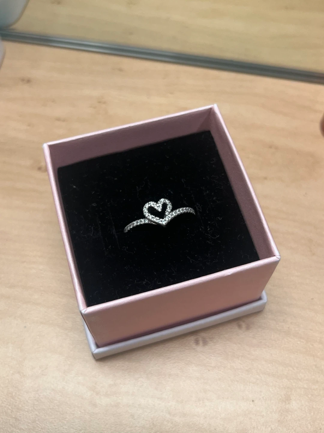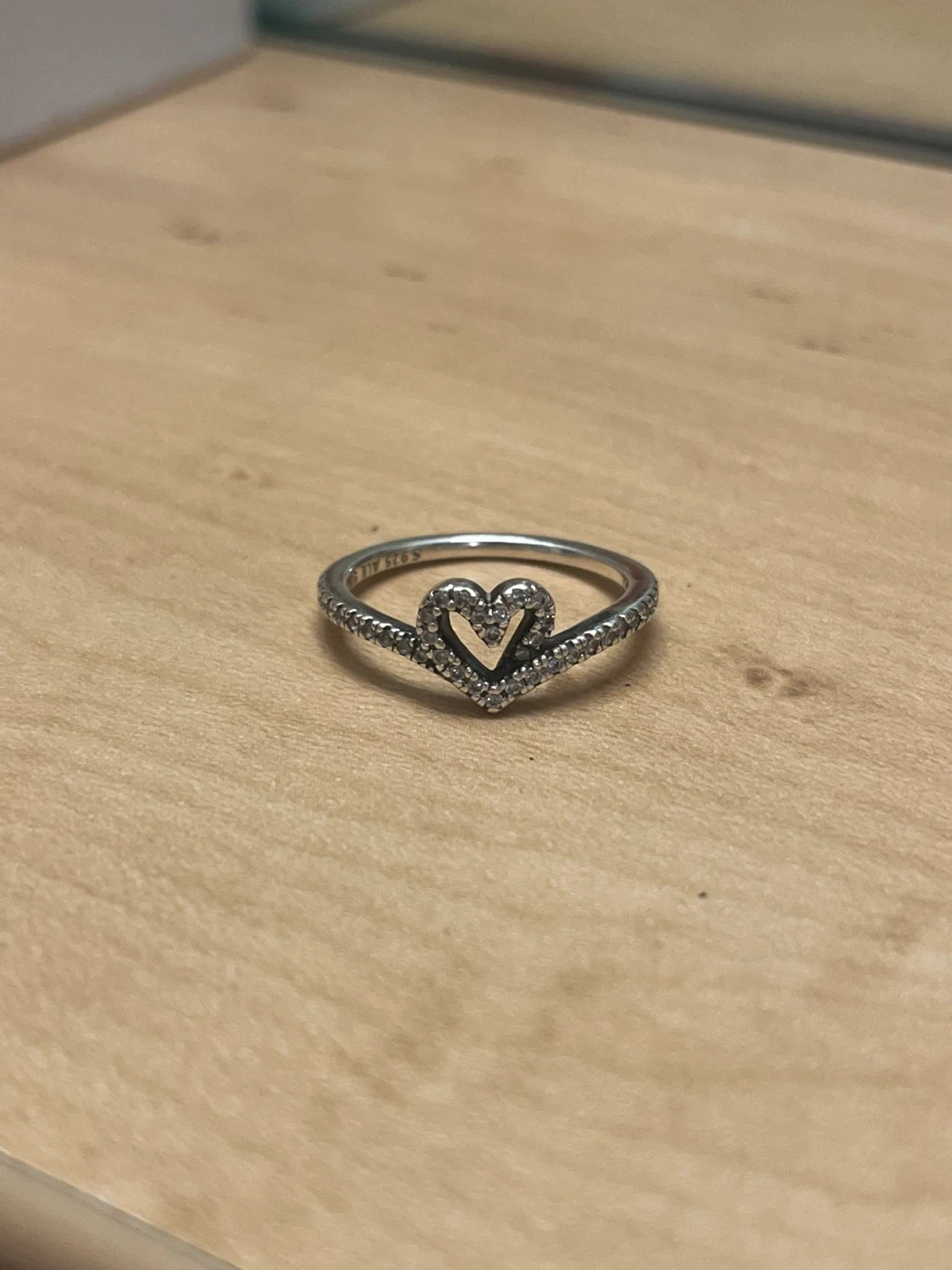Pandora Sparkling Wishbone Heart Ring