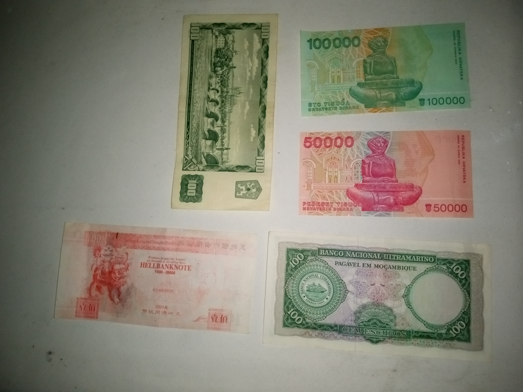 Selling a collection of foreign currency bills. Includes banknotes from China, Czechoslovakia, Mozambique, and Croatia. Great for collectors!