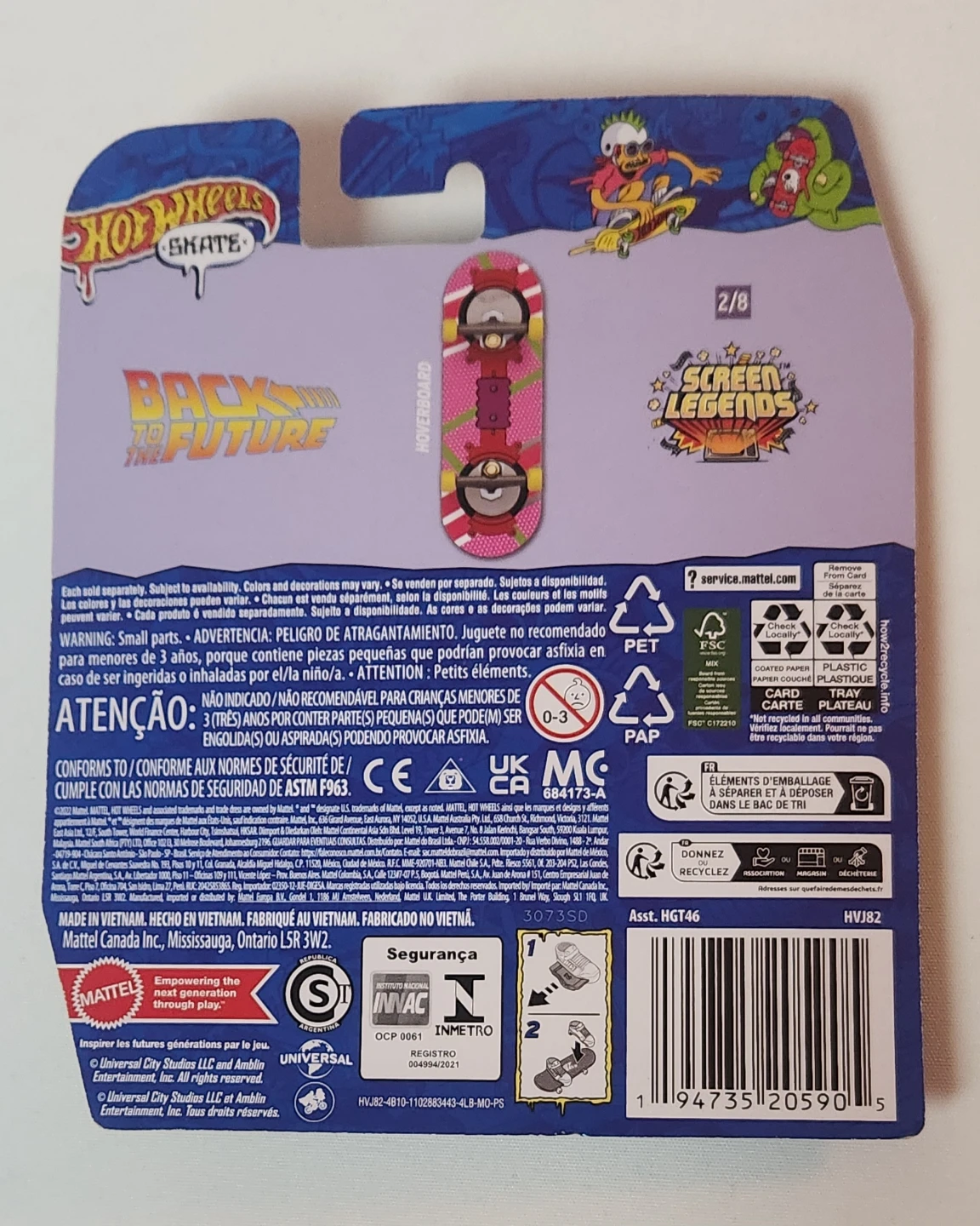 This Hot Wheels diecast skateboard is a perfect replica of the famous hoverboard from Back to the Future. With a 1:64 scale and manufactured in 2024. The skateboard features the same futuristic design as the original hoverboard, complete with logos and graphics.